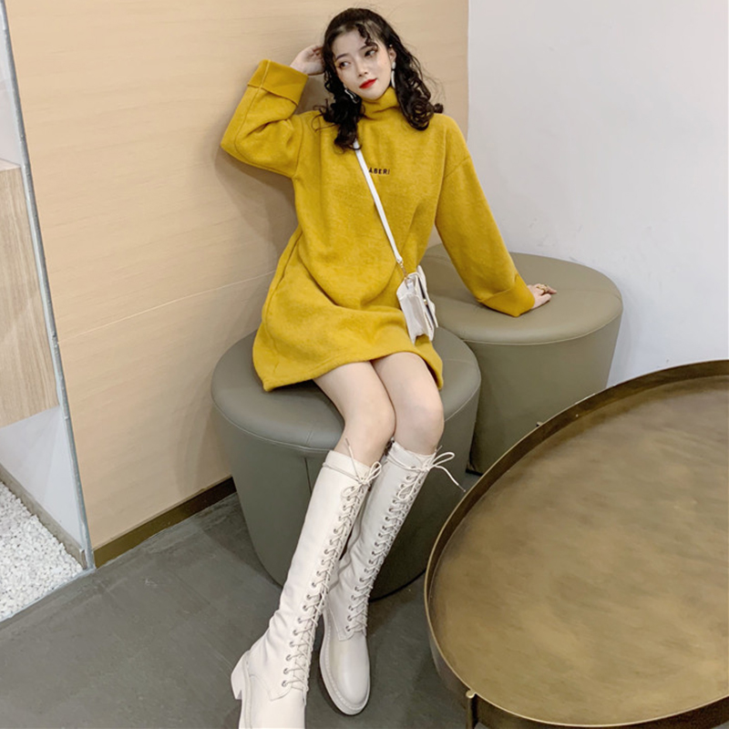 / 高領字母刺繡衛衣2018新款女秋冬裝中長款寬松絨衫學生休閑外套潮