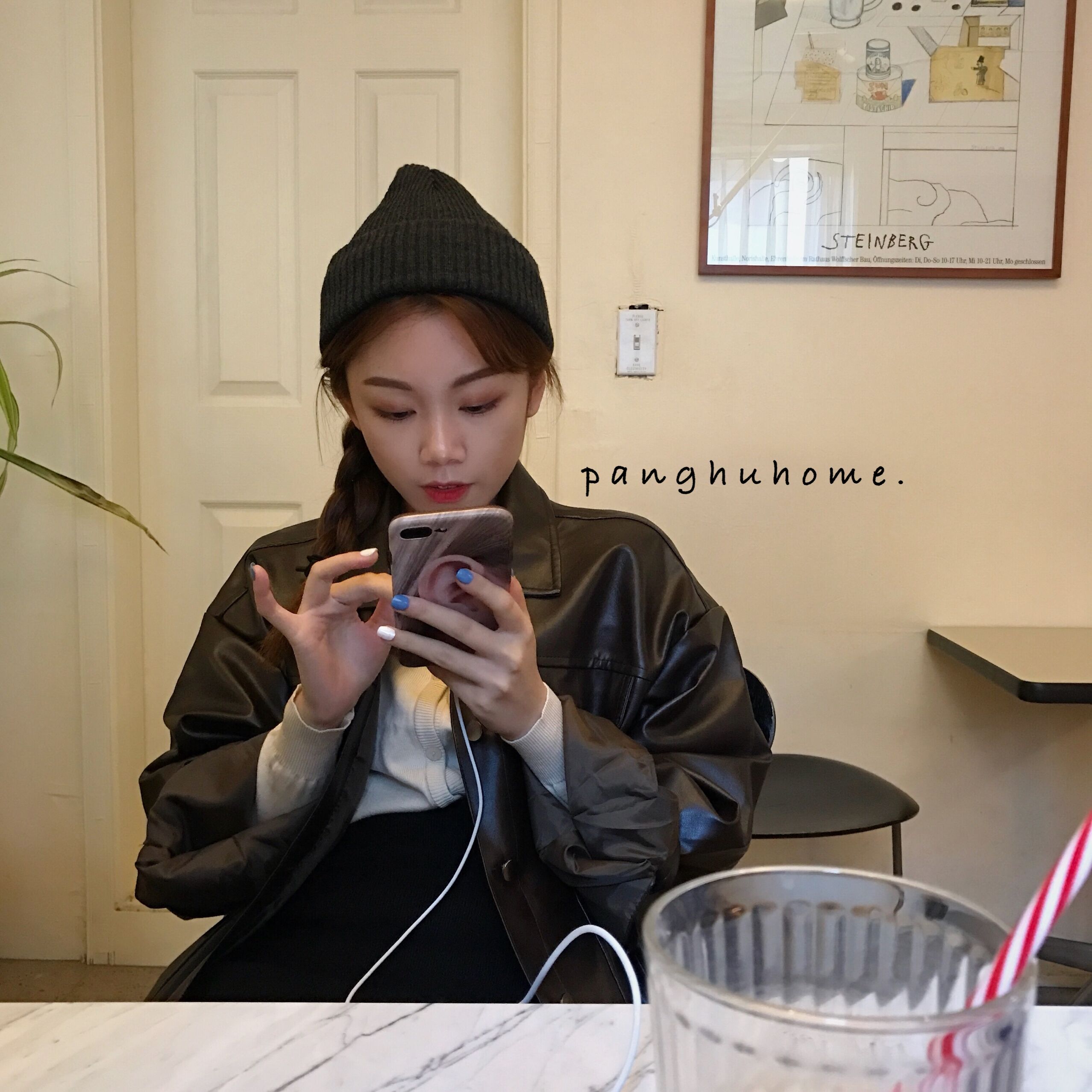 外套女春秋2018新款韓版兩種風格寬松polo領大口袋皮衣長袖外套潮