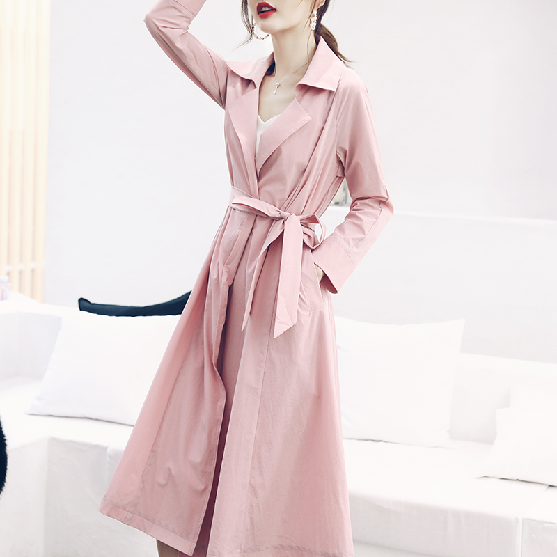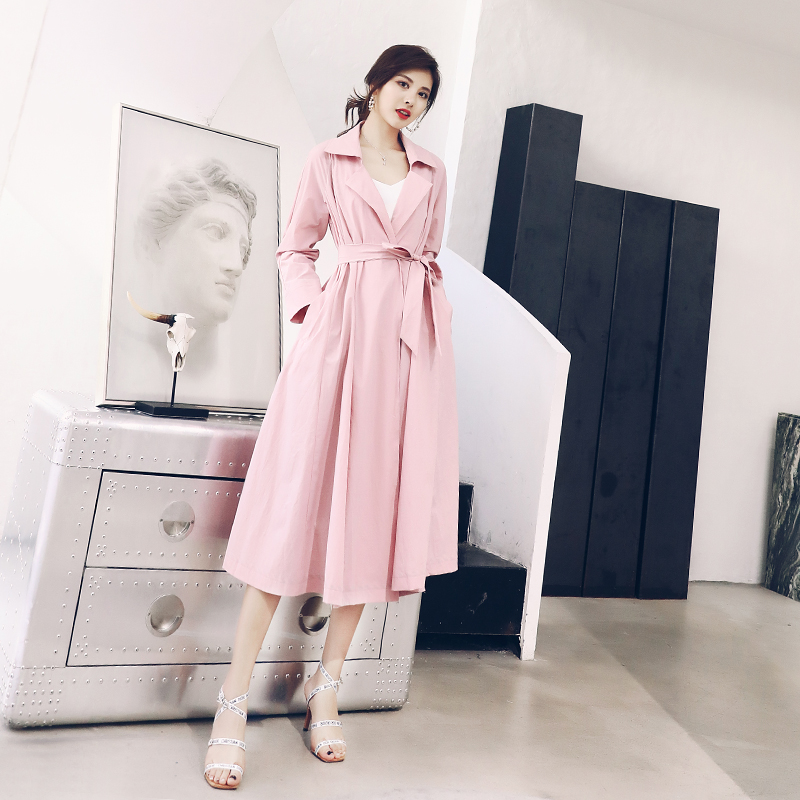 / S秀2018秋裝新款名媛氣質時尚西裝領長袖風衣女寬松中長款外套