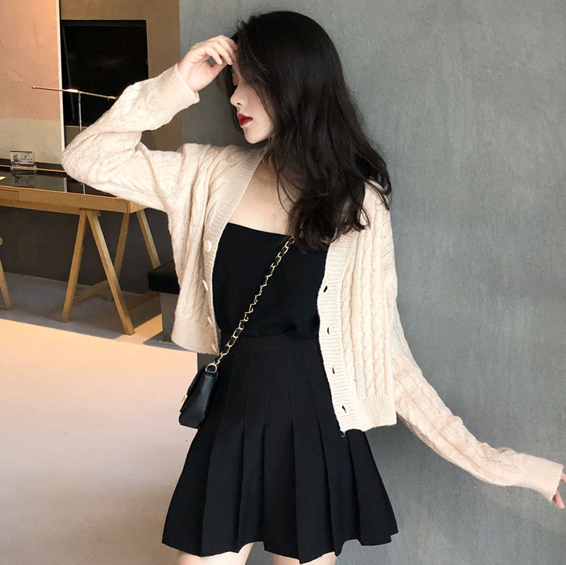 / 慵懶毛衣女2018秋裝新款韓版寬松V領針織開衫學生休閑長袖短外套