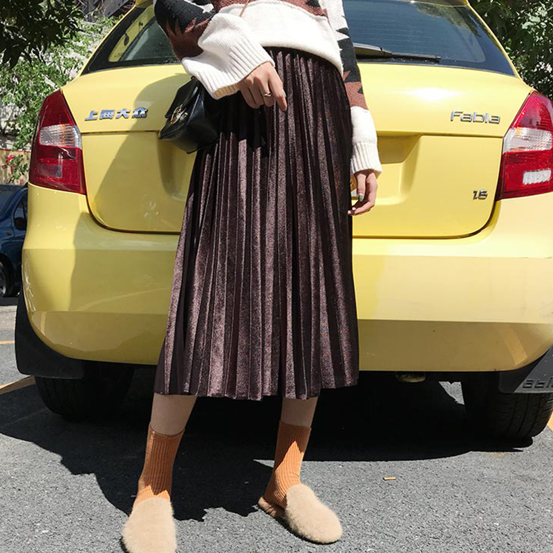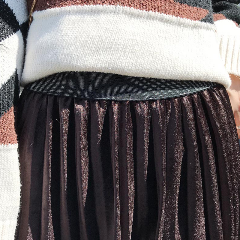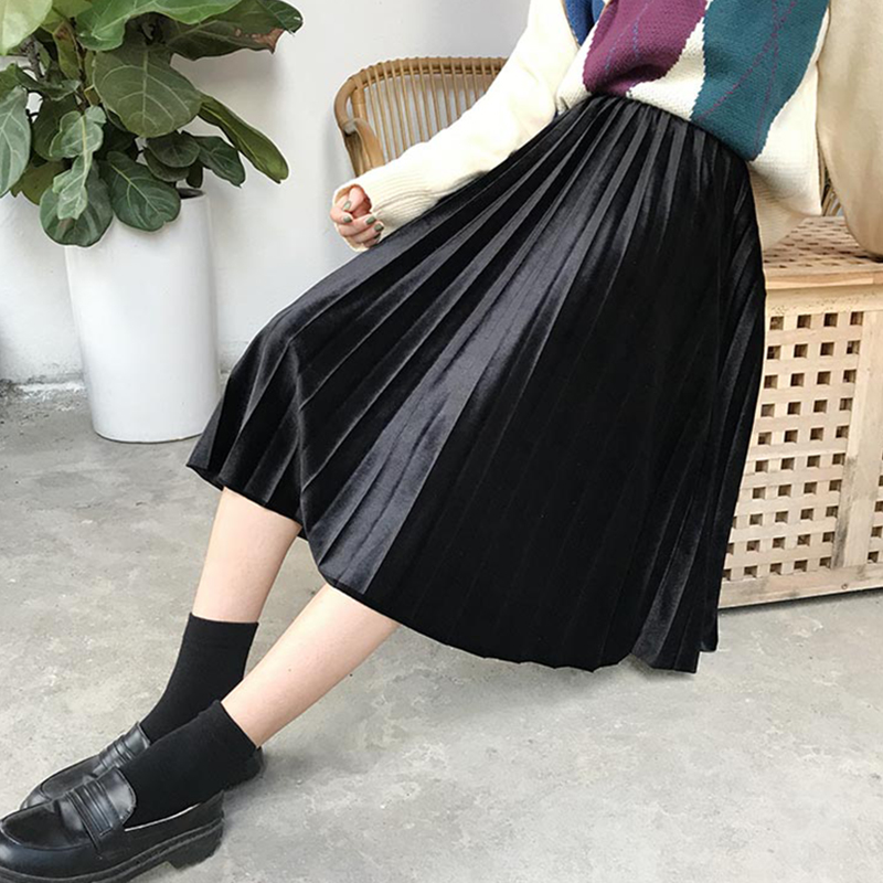 / 黑色半身裙女秋季新款高腰金絲絨a字裙子女裝韓版顯瘦中長百褶裙