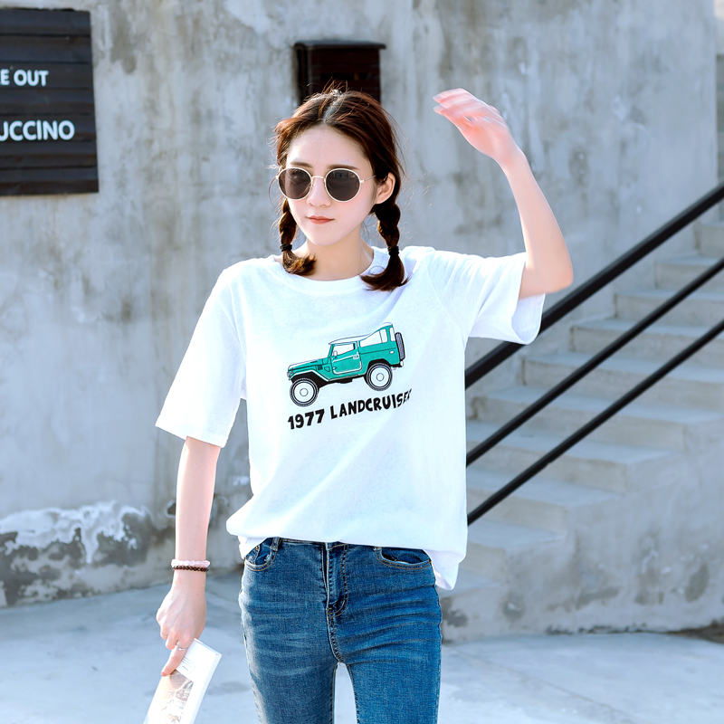 夏裝新款女裝韓版白色百搭t恤寬松印花學生短袖上衣體恤女潮