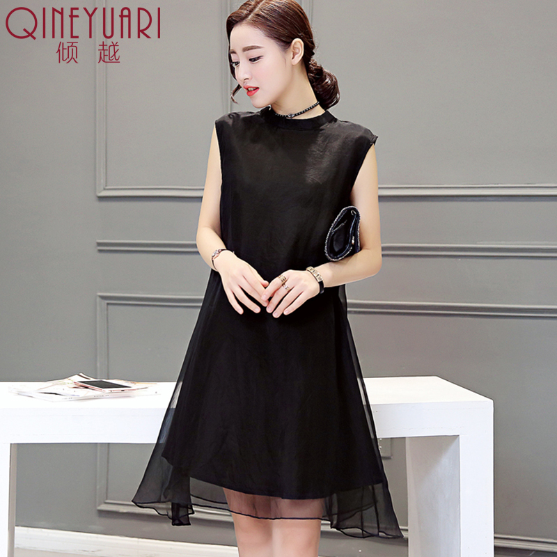 / 2017夏季新款氣質女裝OL時尚顯瘦無袖雪紡連衣裙女中長款A字裙子