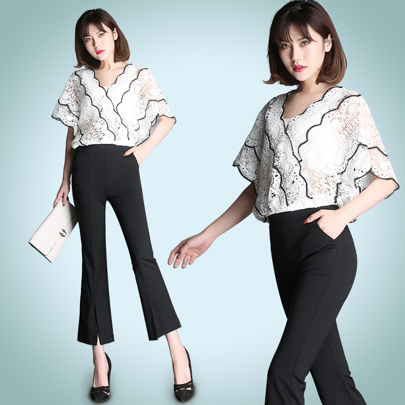/ 夏季微喇褲女九分褲韓版開叉微喇叭褲新款顯瘦七分闊腿褲西裝褲子