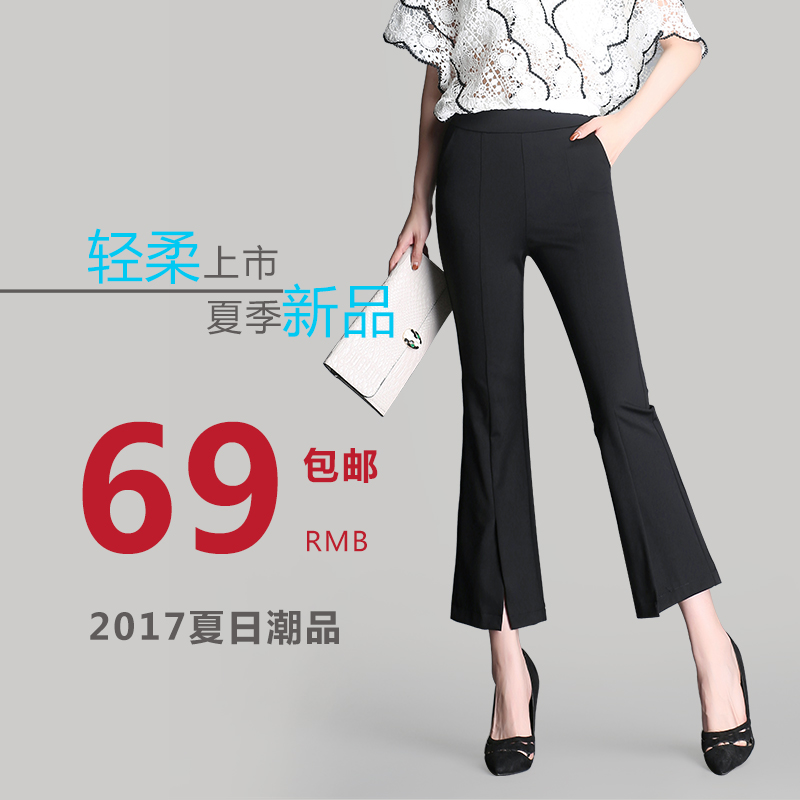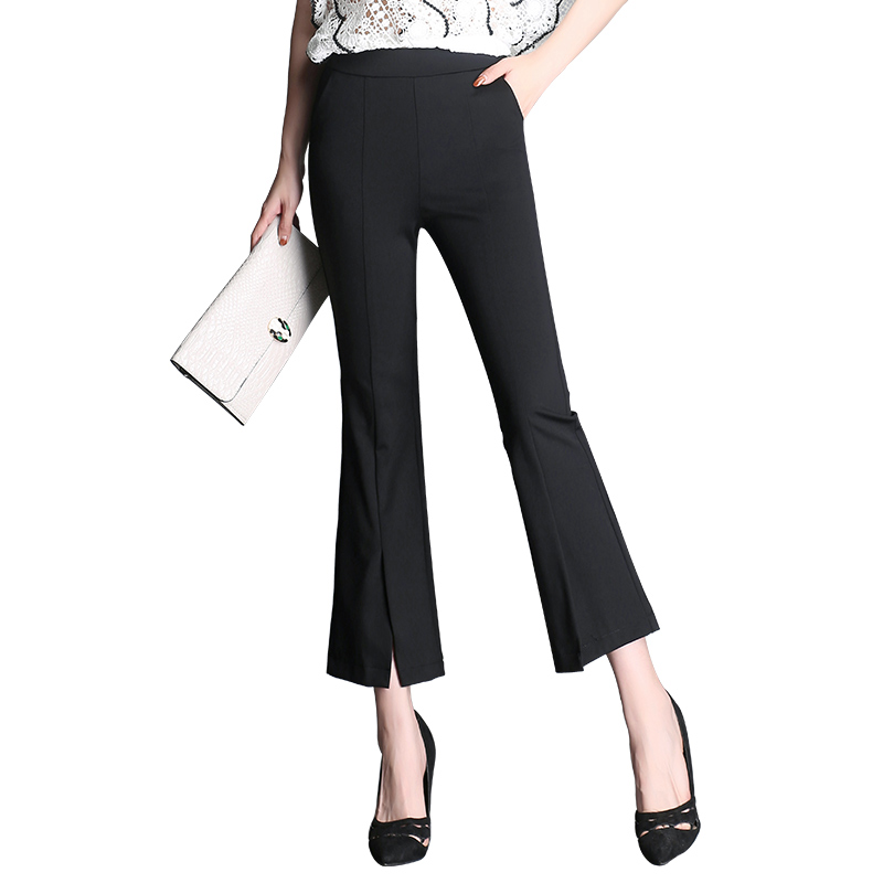 夏季微喇褲女九分褲韓版開叉微喇叭褲新款顯瘦七分闊腿褲西裝褲子