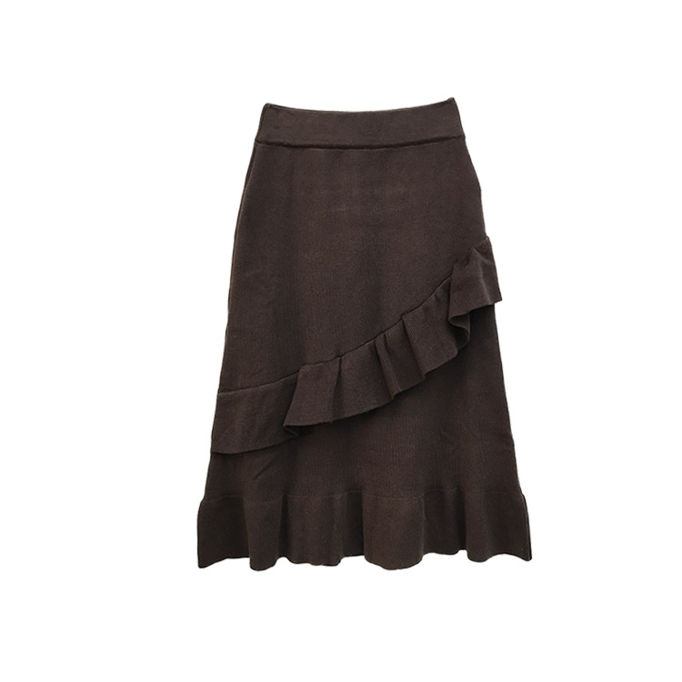 / 港味女秋裝2018新款裙子百搭A字裙針織高腰中長款荷葉邊半身裙潮