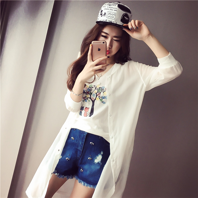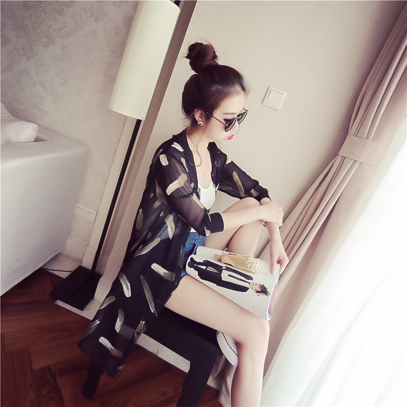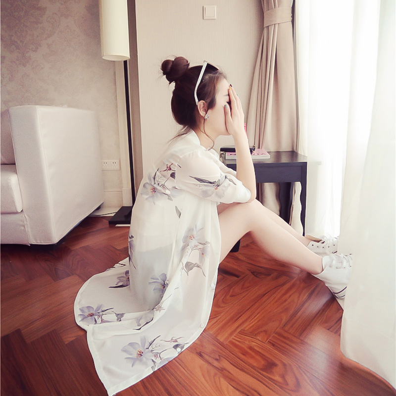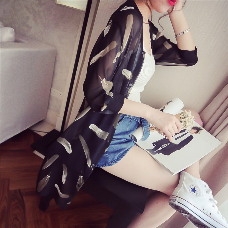 ■Brand/品名:雪紡印花小立領中長款七分袖防曬衫