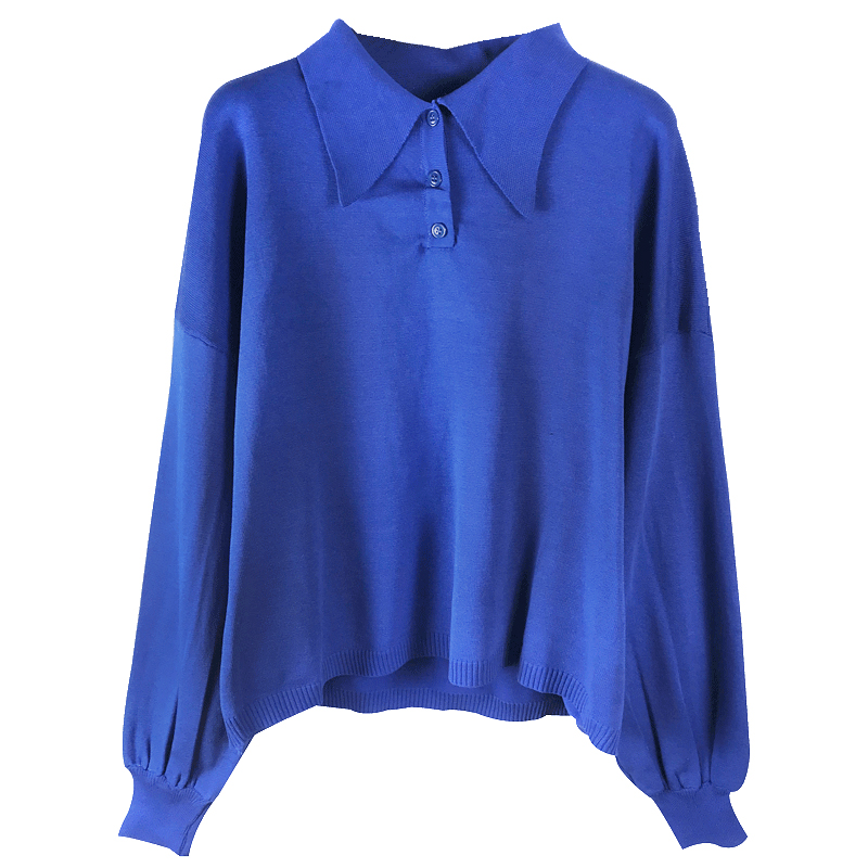 復古POLO領慵懶風針織衫女秋裝新款休閑黑色外套寬松燈籠長袖上衣