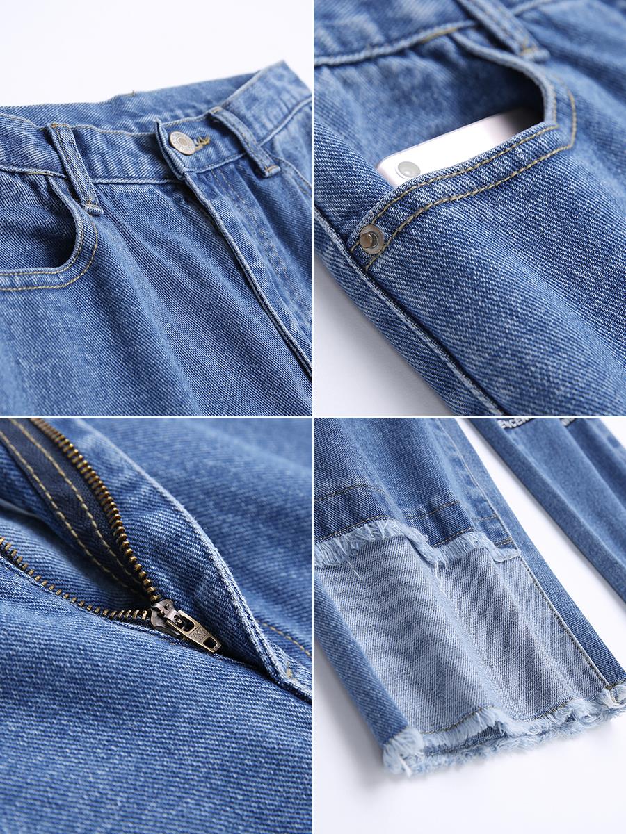 MG小象高腰牛仔褲女個性秋裝2018新款學生寬松港味復古chic風褲子