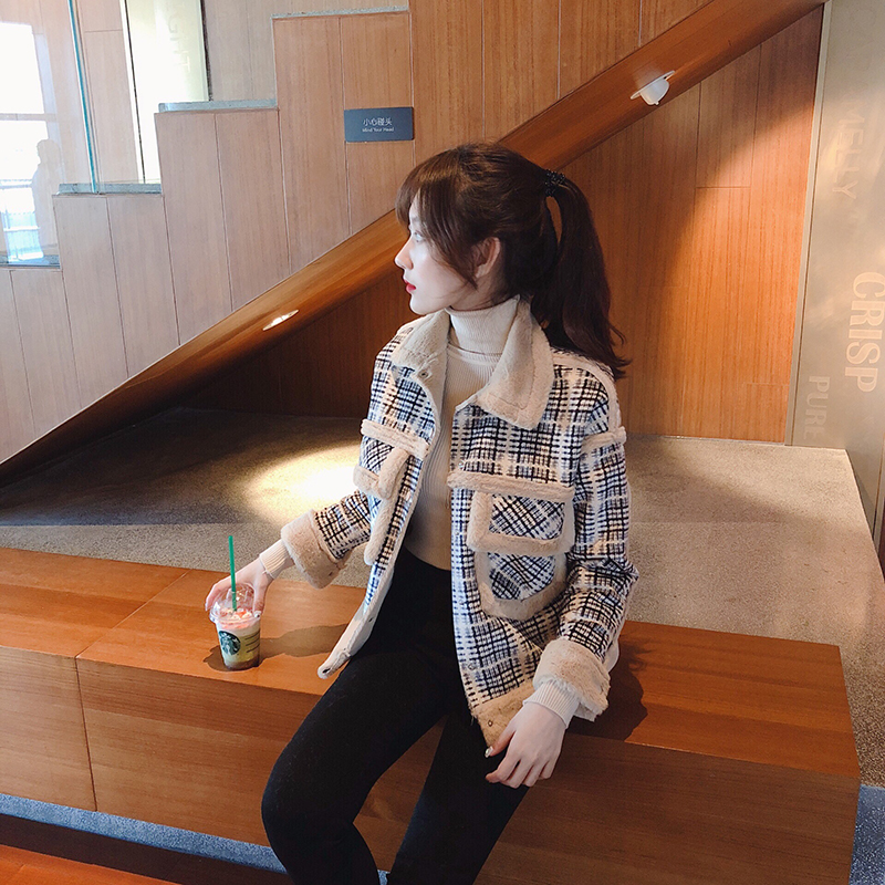 chic港風時尚網紅同款毛茸茸長袖外套女2018新款短款氣質翻領上衣