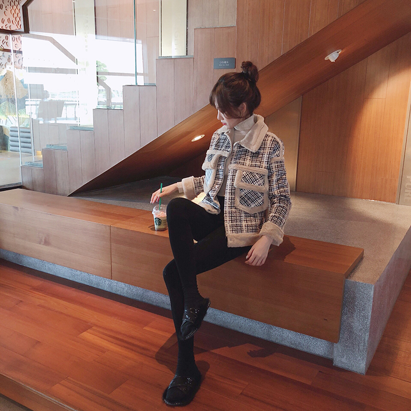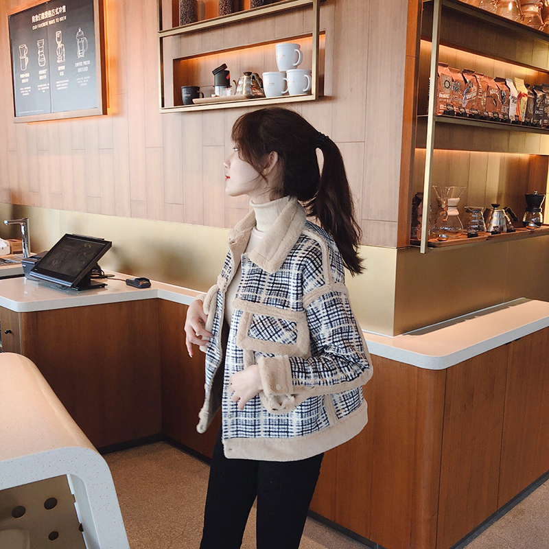 / 韓版毛呢外套女冬2018新款百搭寬松加絨工裝加厚夾克皮毛一體大衣