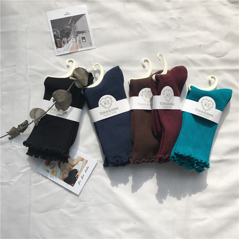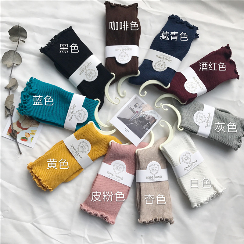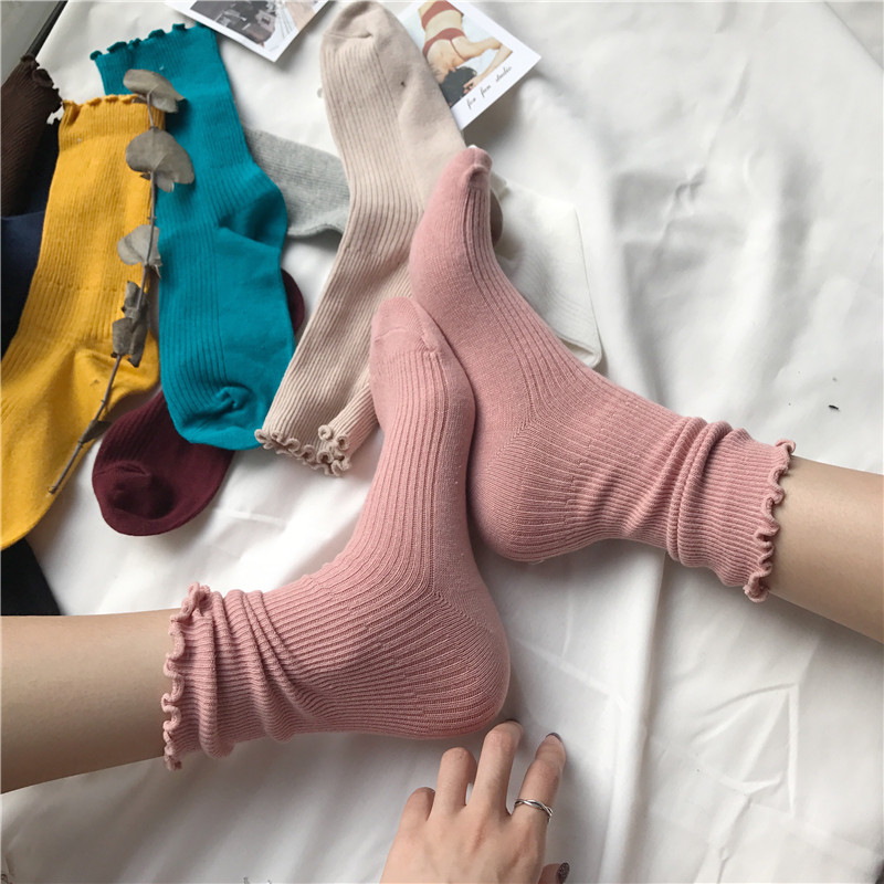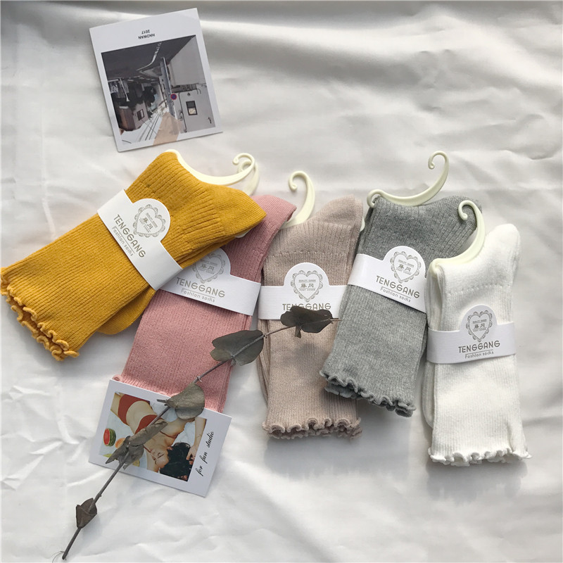 / 早秋港味chic時尚新款襪子女堆堆襪花邊中筒襪薄款日系木耳邊棉襪