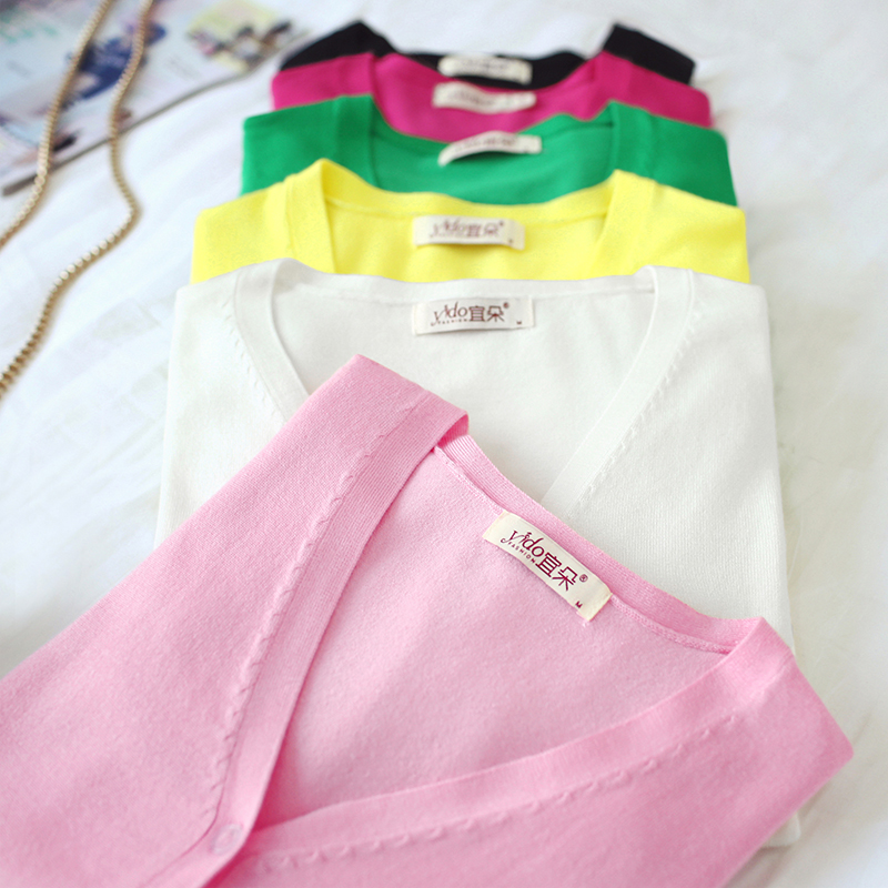 / 春季薄款外搭常規空調衫女開衫 v領長袖針織衫女春秋毛衣外套