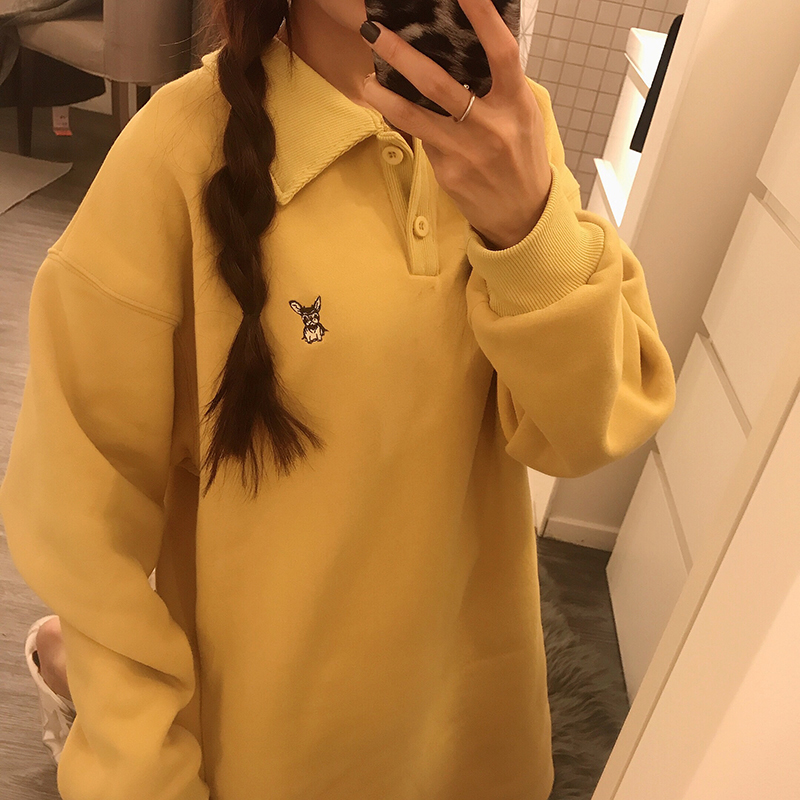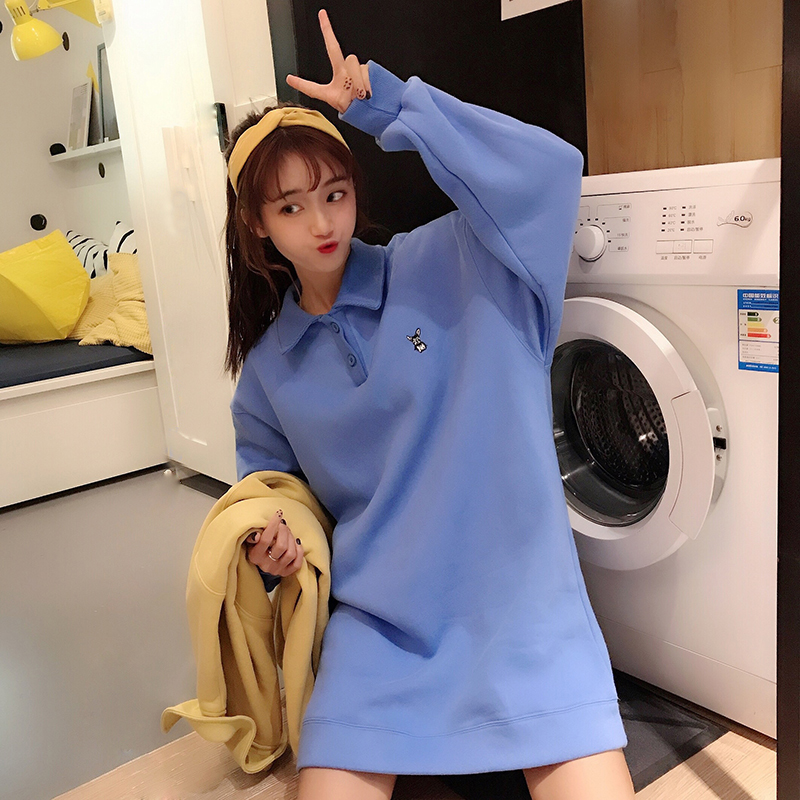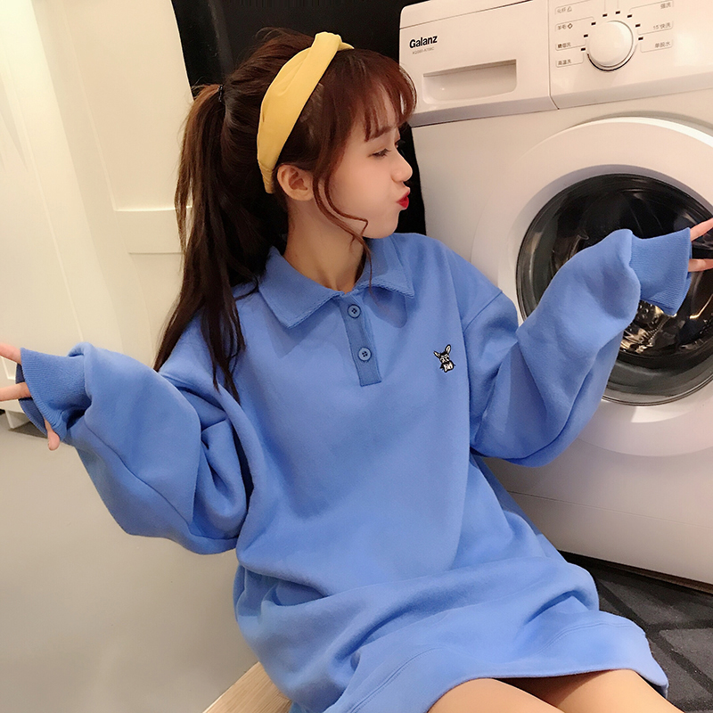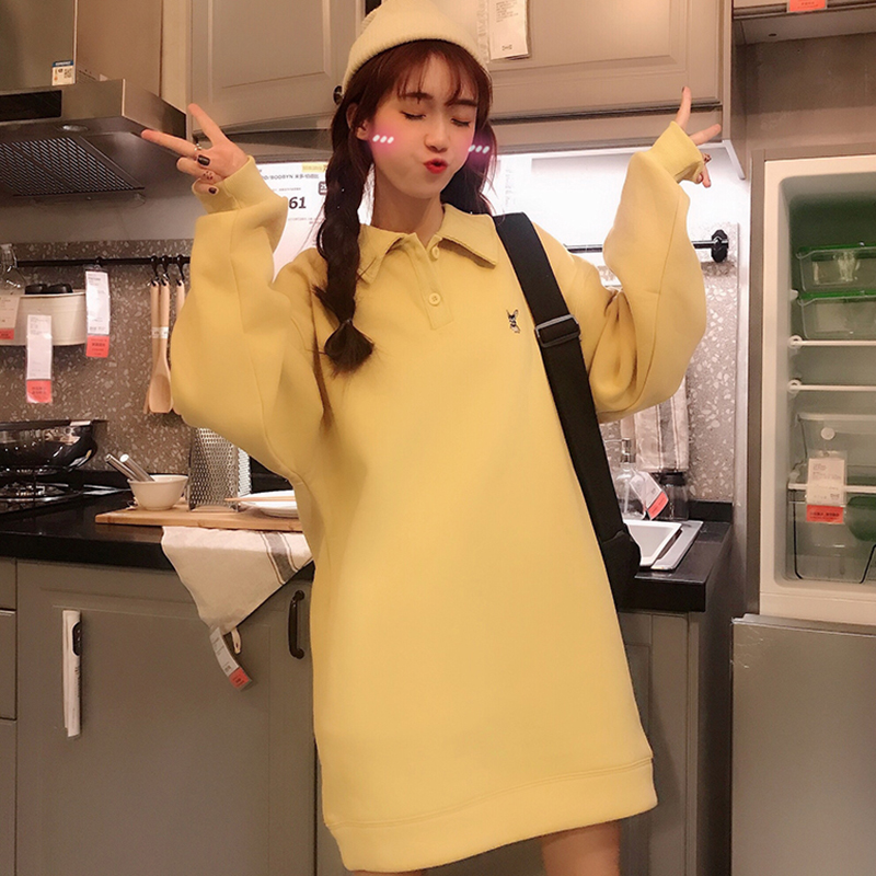 中長款Polo領衛衣2018新款女秋冬裝港風刺繡加絨外套時尚長袖上衣
