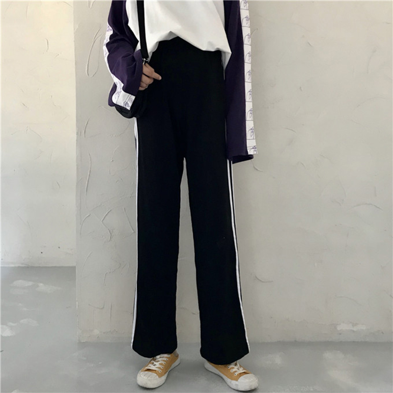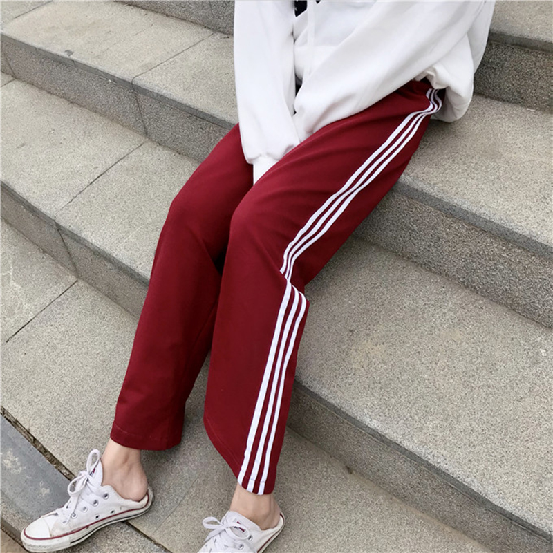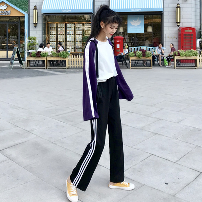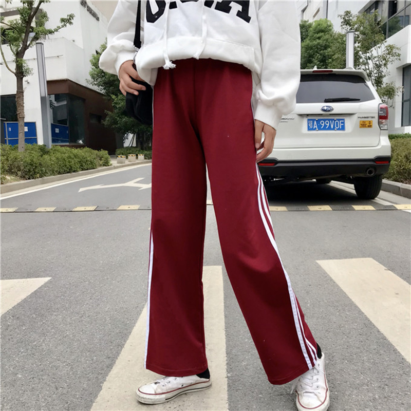 / 學生三條杠運動休閑褲子女秋裝2018新款韓版寬松高腰直筒闊腿長褲