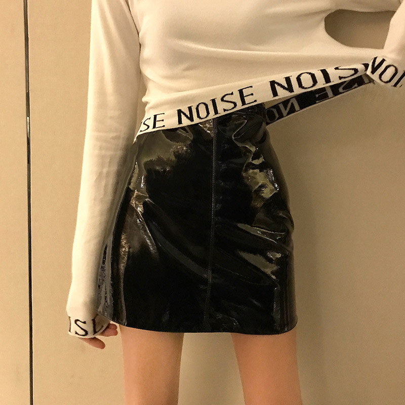 / 原宿風長袖女t恤秋chic字母半高領高腰短款長袖圓領套頭打底上衣