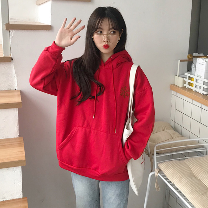 可愛少女刺繡寬松加絨衛衣冬裝2018新款學生韓版時尚連帽上衣外套