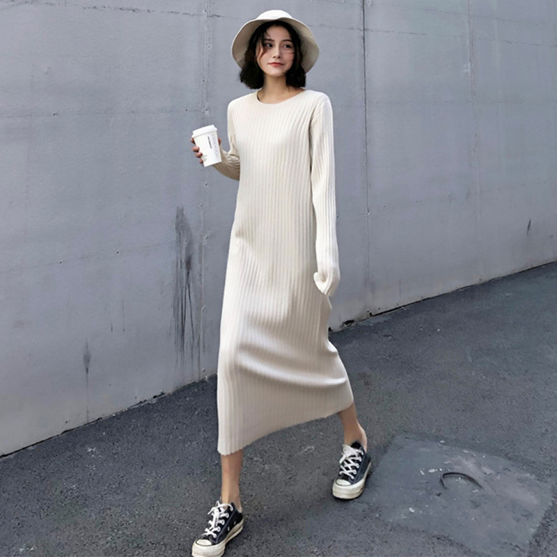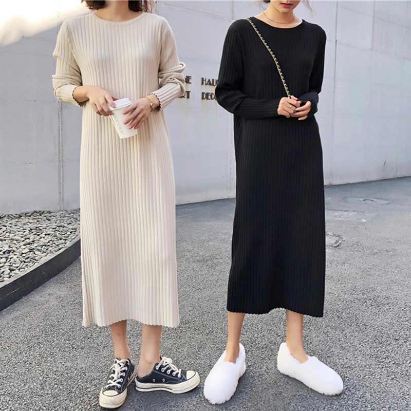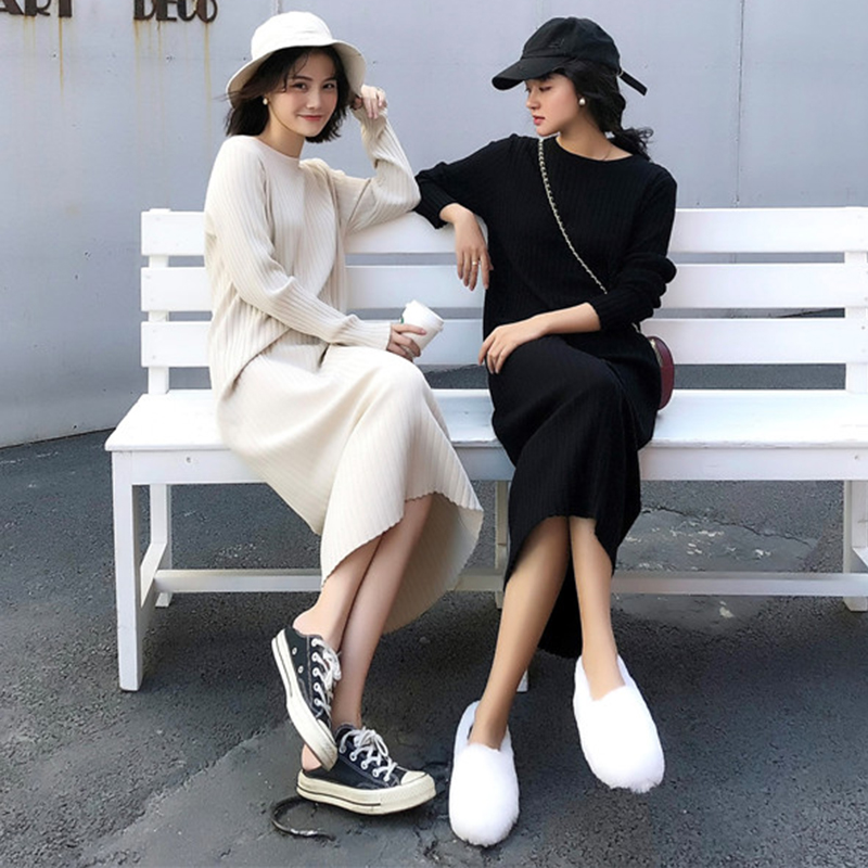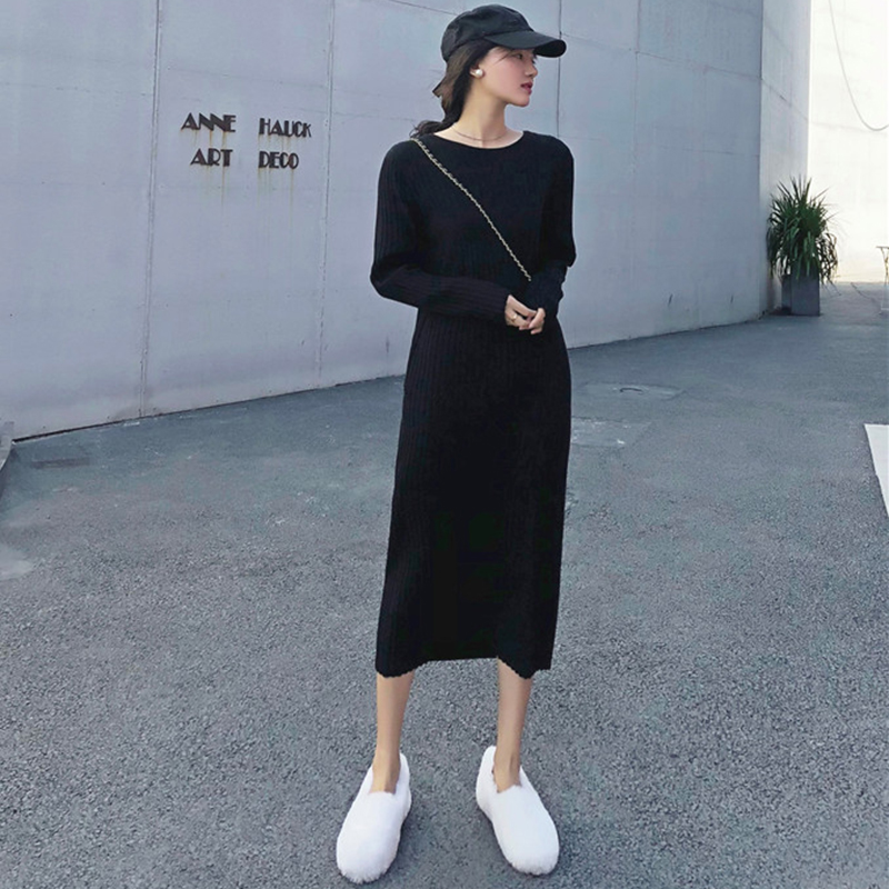 / 氣質圓領長袖黑色連衣裙子秋冬裝新款學生少女寬松egg法式桔梗裙