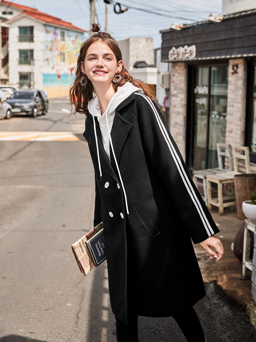 / MG小象2018流行呢子大衣女冬季新款中長款寬松時尚黑色毛呢外套潮
