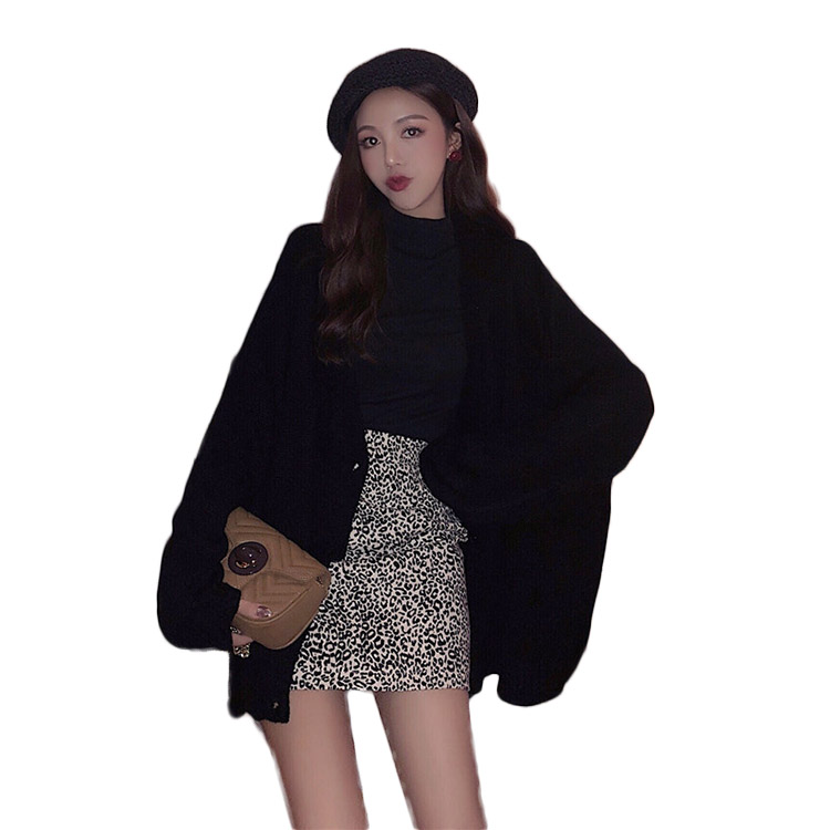 秋裝女2018新款寬松V領單排扣開衫+百搭包臀半身裙+純色打底衫潮