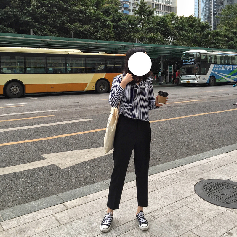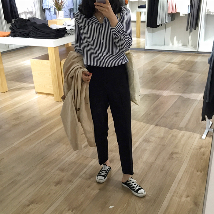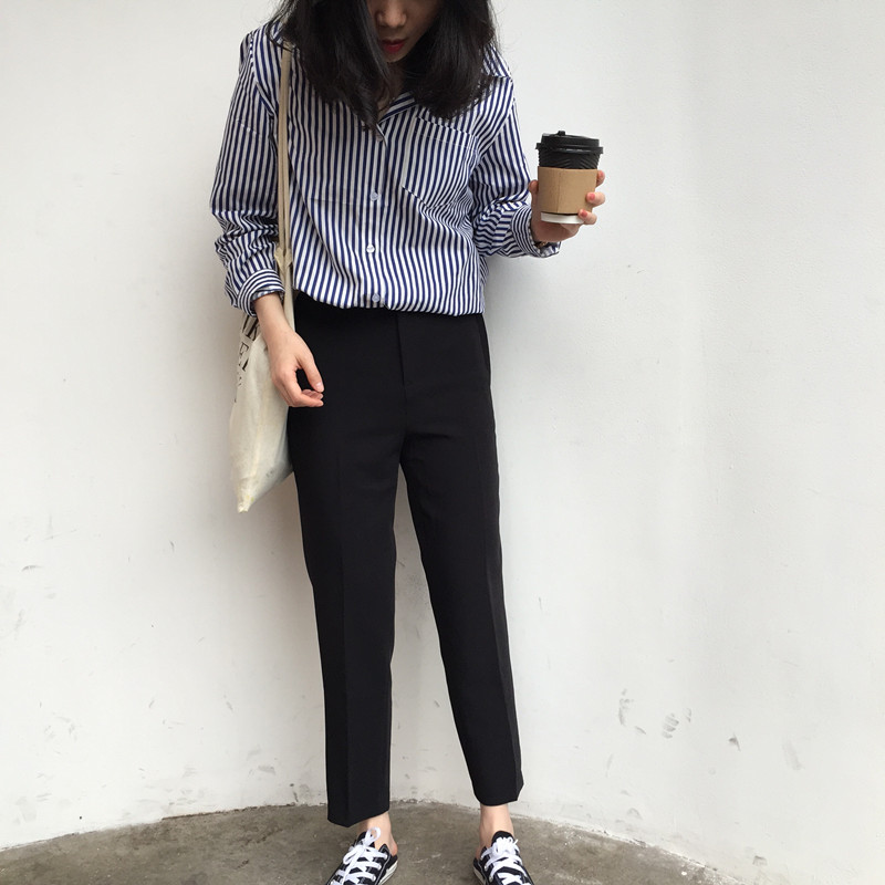 / 秋裝韓版好版型煙管褲寬松顯瘦直筒褲西裝褲黑色九分褲休閑褲女
