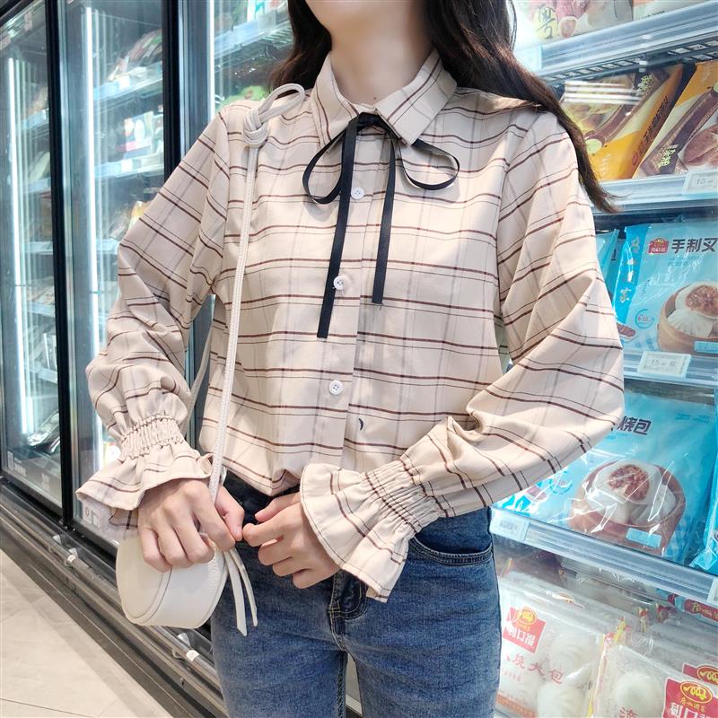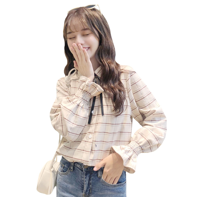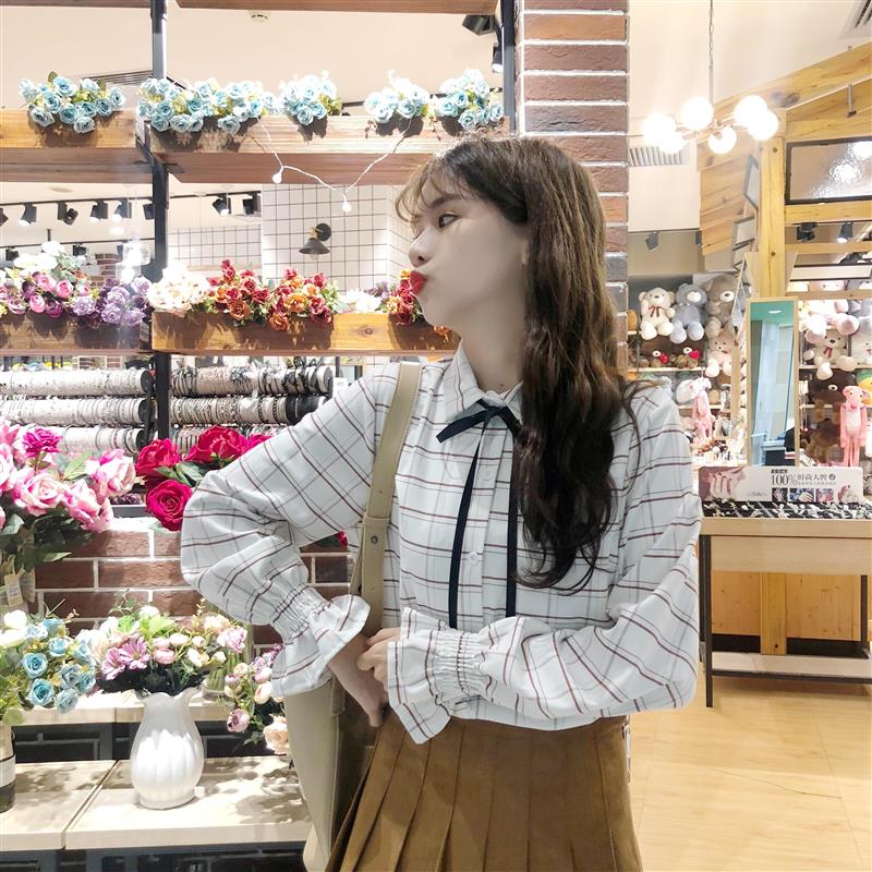 秋季女裝2018新款韓版復古港風格子襯衫寬松休閑長袖襯衣上衣學生