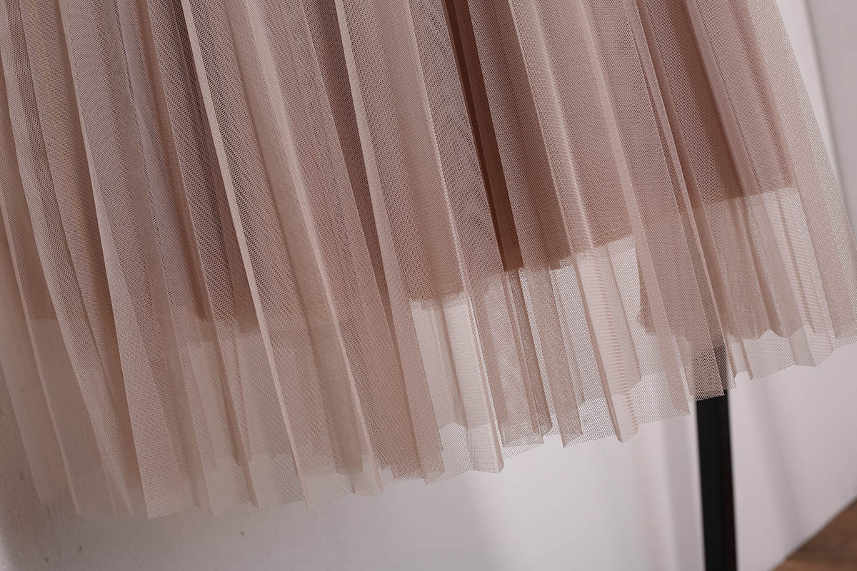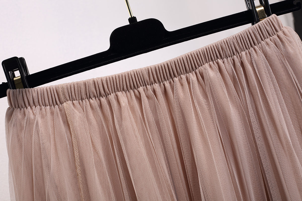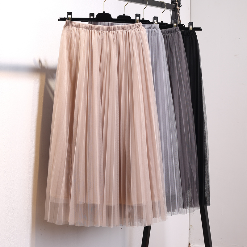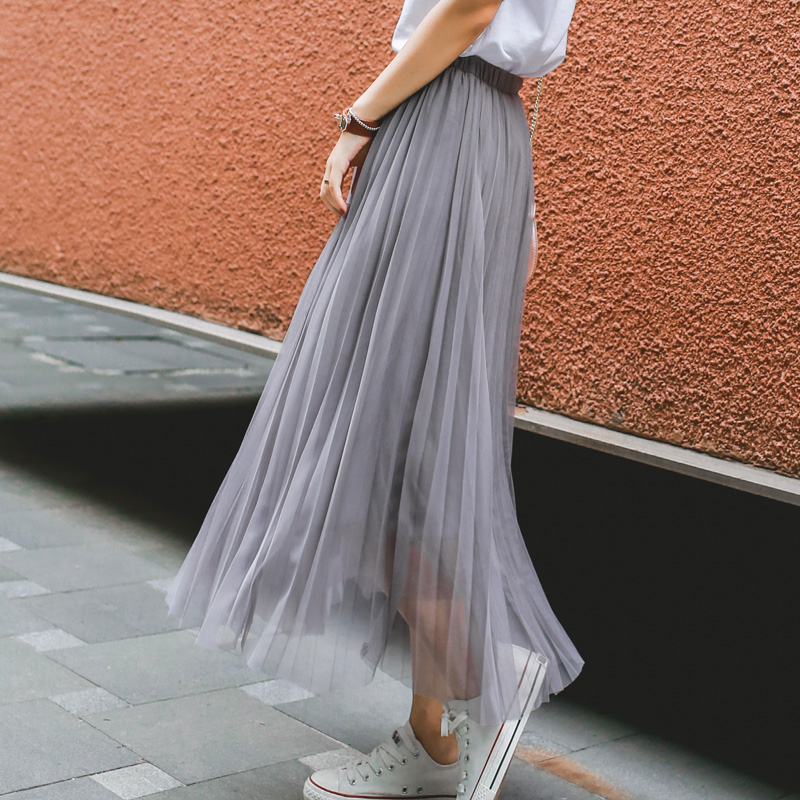 / 網紗半身裙中長款紗裙女夏高腰雪紡紗網a字長裙蓬蓬百褶裙子