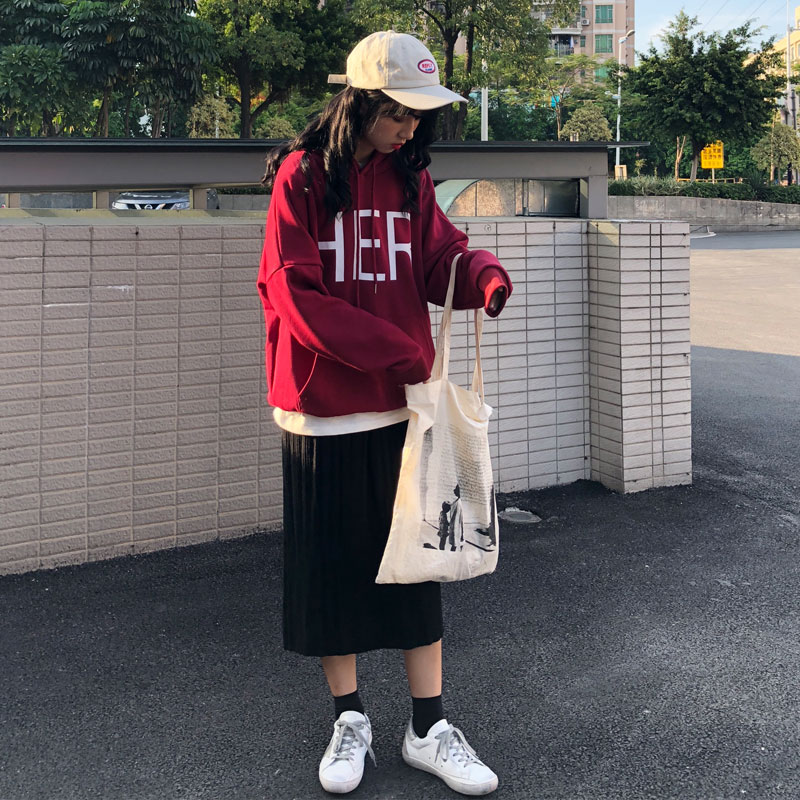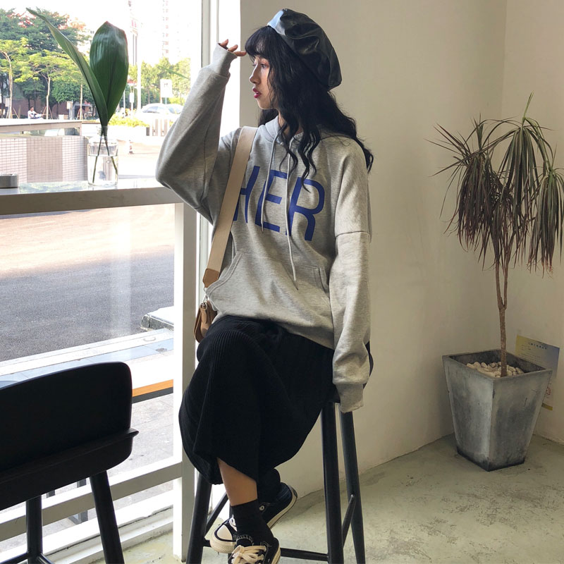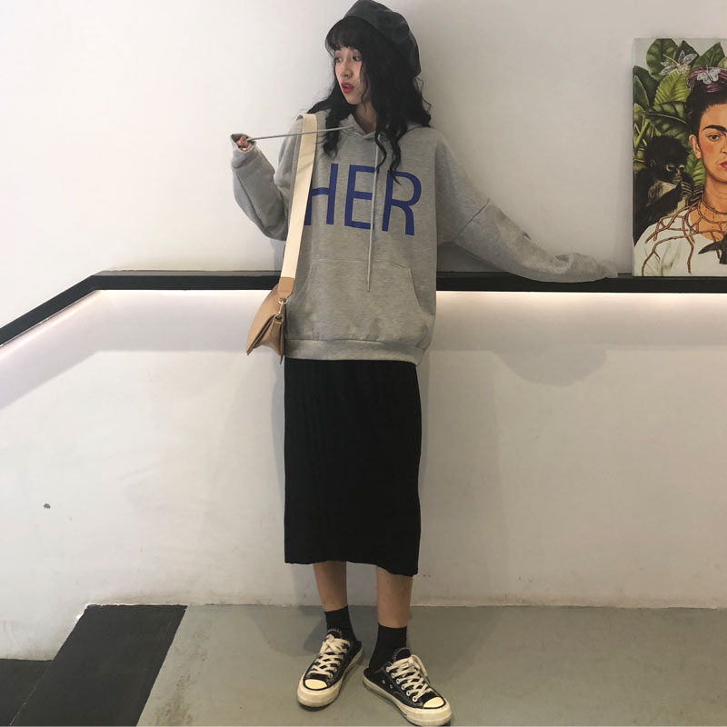 / 韓版時尚休閑套裝秋季字母長袖衛衣外套+壓褶開叉半身裙兩件套女