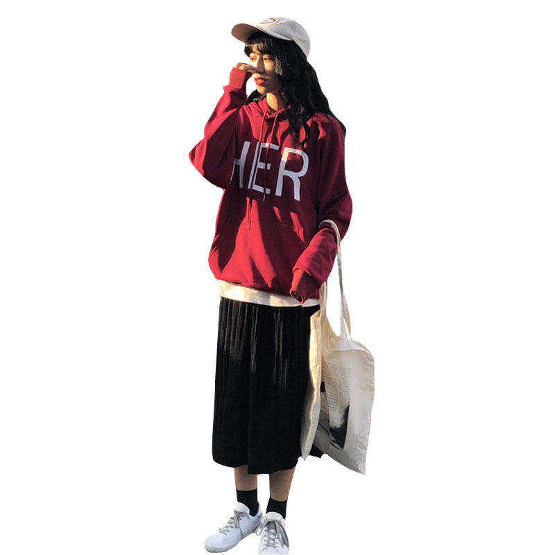 韓版時尚休閑套裝秋季字母長袖衛衣外套+壓褶開叉半身裙兩件套女