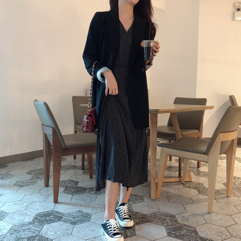 黑色西裝|波點連衣裙