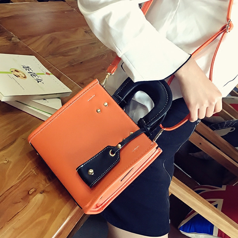/ 斜挎包包女新款潮撞色手提包迷你小方包韓版百搭單肩女包小包