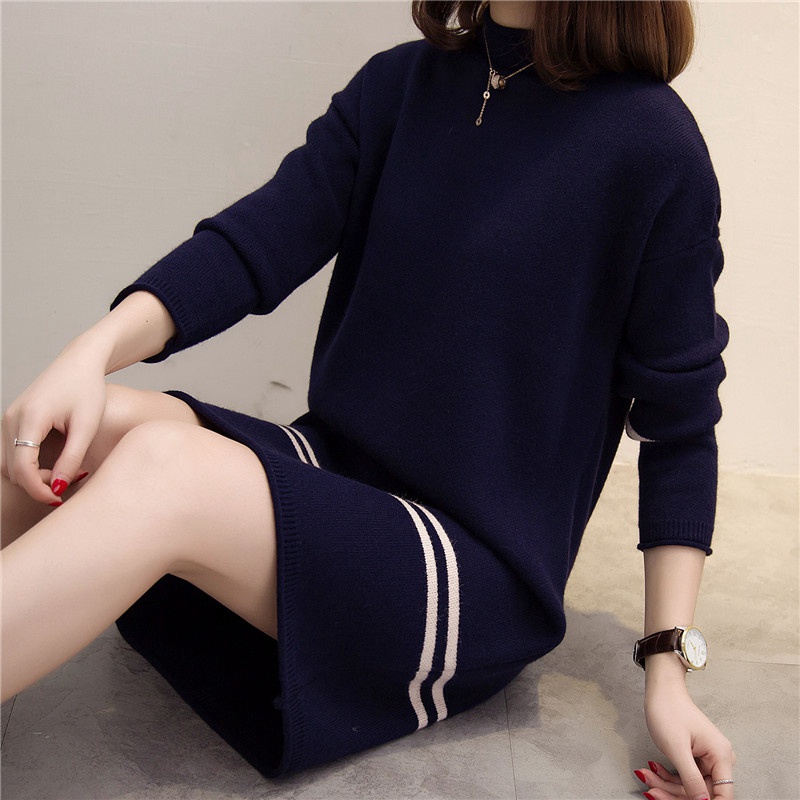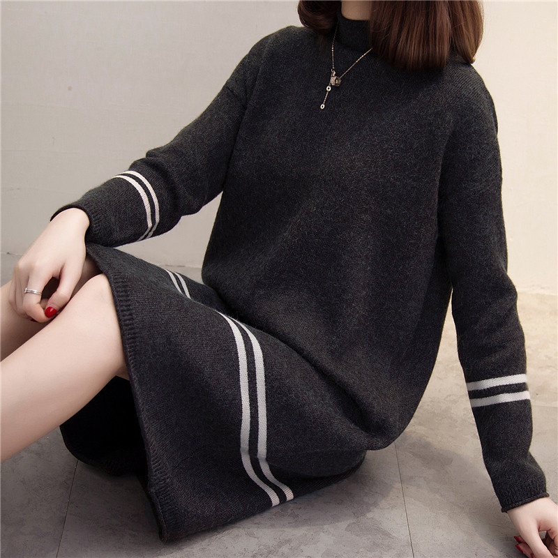 新款冬裝女裝潮上衣寬松打底針織衫套頭半高領毛衣女秋冬外套