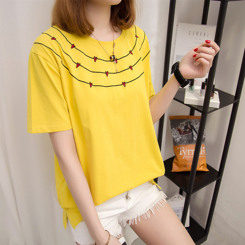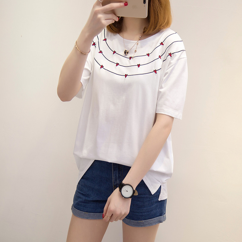 / 女裝夏裝新款潮白色t恤女短袖寬松條紋上衣韓版學生百搭體恤