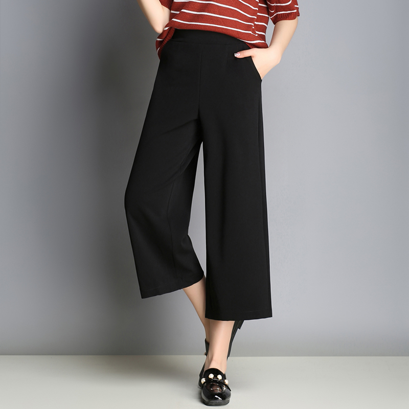 新款休閑直筒寬松薄款韓版學生高腰顯瘦雪紡夏季九分闊腿女褲