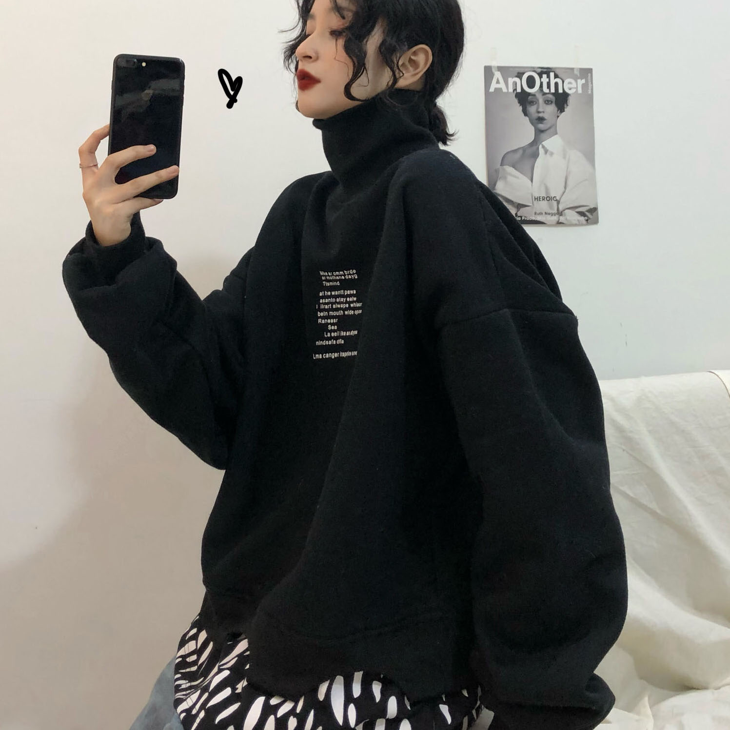 衛衣2018新款女長袖韓版寬松顯瘦oversize印花半高領慵懶長款裙子