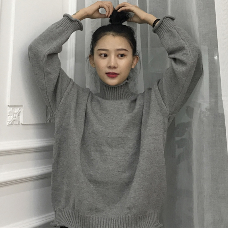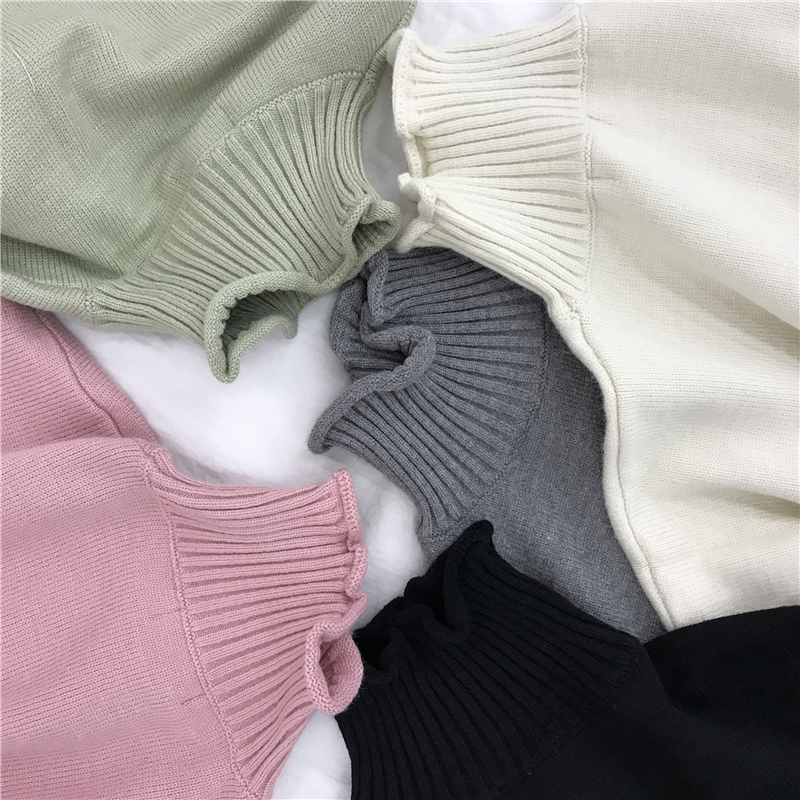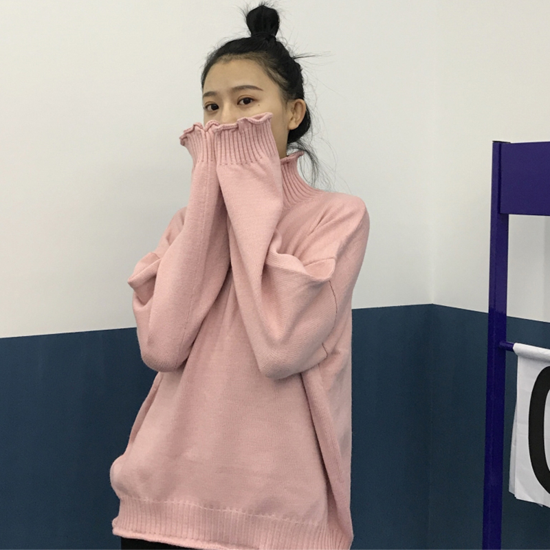 慵懶復古套頭毛衣2018冬裝新款韓版高領花邊寬松長袖針織衫上衣潮