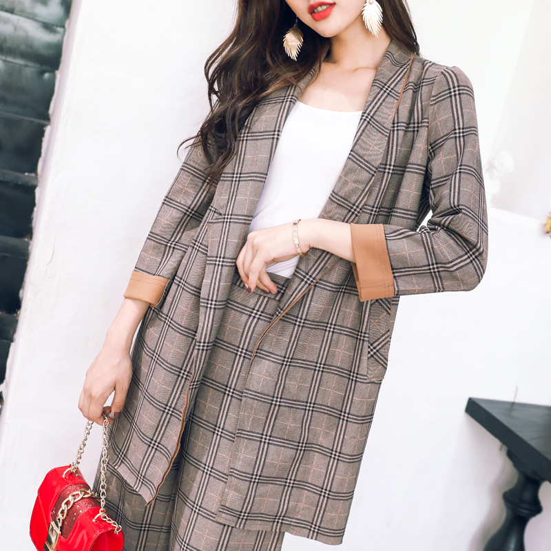 / 歐洲站2018秋季新款復古格子西裝外套寬松百搭長褲休閑闊腿褲套裝