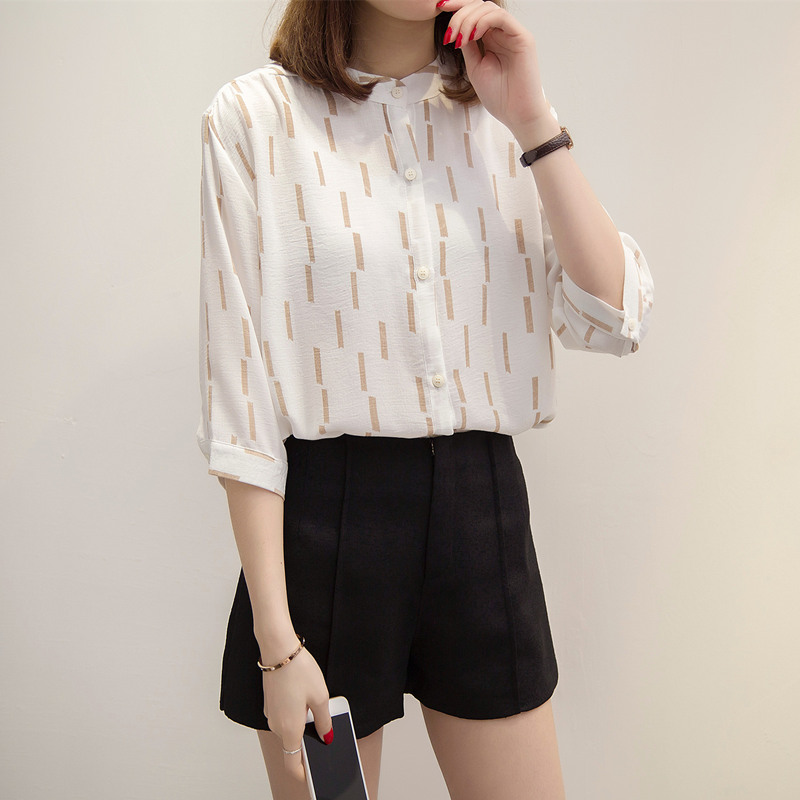 / 夏裝新款女小清新白襯衫女chic半袖外套韓范條紋襯衣上衣女夏