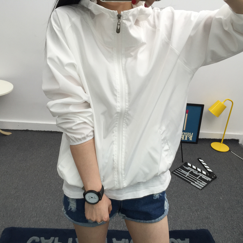2017春夏季新款韓版防曬衣長袖女連帽拉鏈糖果色薄款學生外套潮