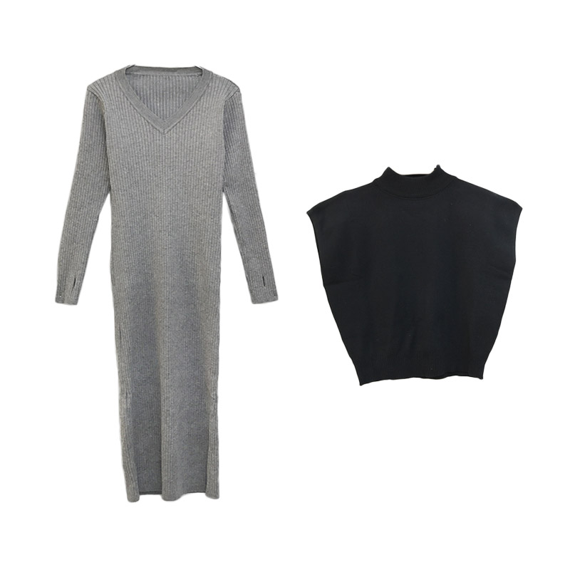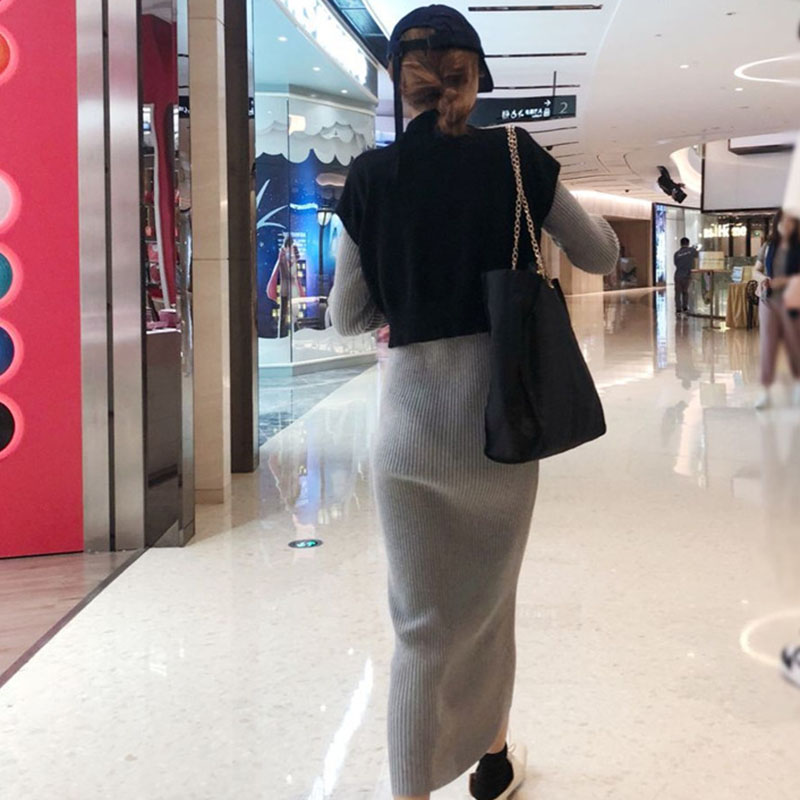 馬海毛網紅毛衣女2018新款針織開衫外套冷淡風針織吊帶連衣裙套裝