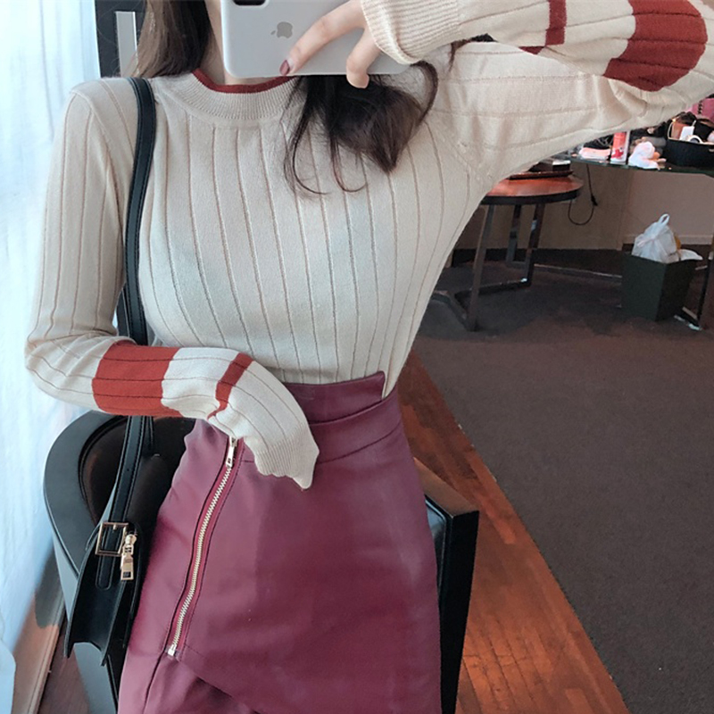 / 圓領外穿套頭毛衣女秋冬裝2018新款拼色上衣修身顯瘦打底針織衫潮