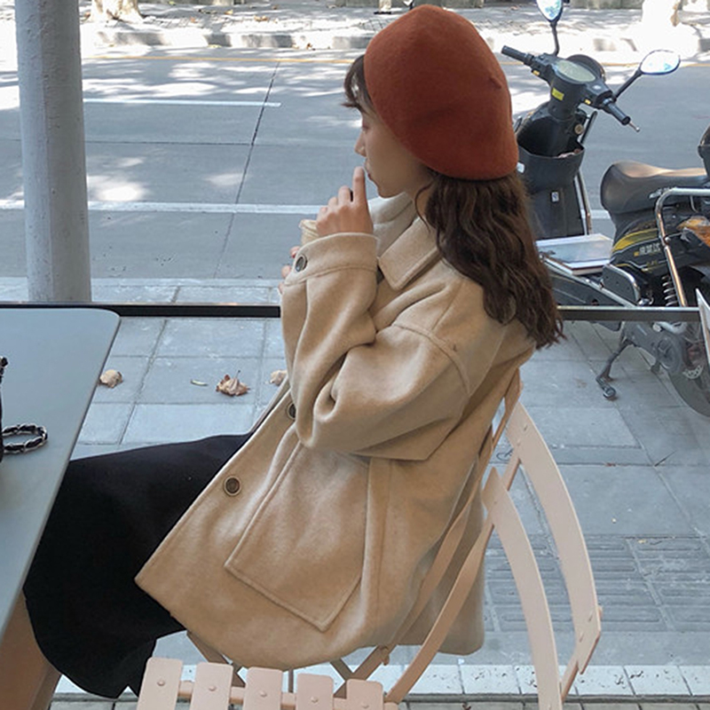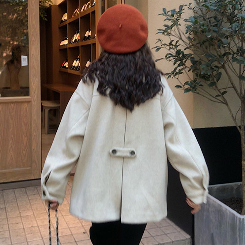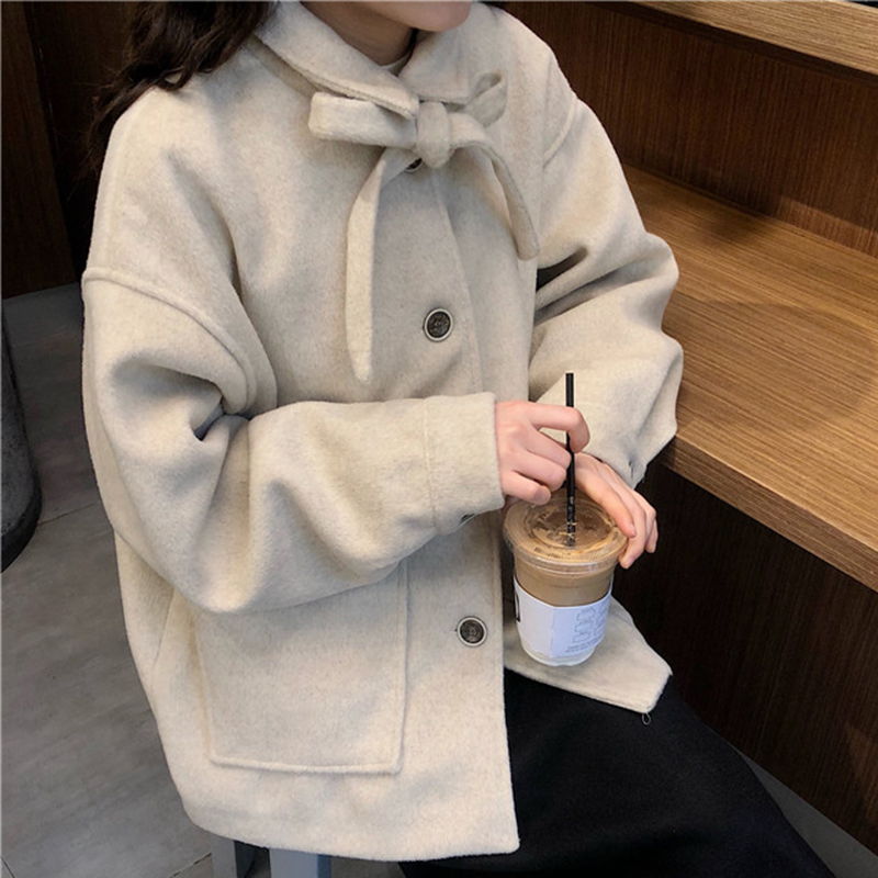 2018流行毛呢外套女秋冬裝新款赫本大衣純色蝴蝶結開衫學院風上衣