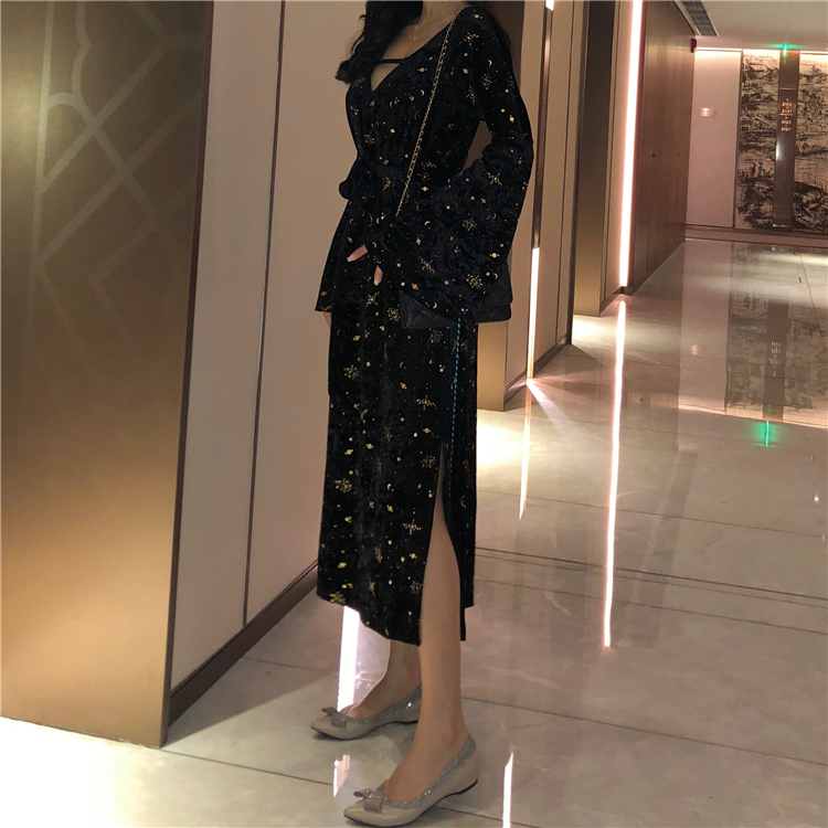 / 秋冬2018新款復古長袖V領中長款連衣裙小心機時尚顯瘦晚晚風裙子