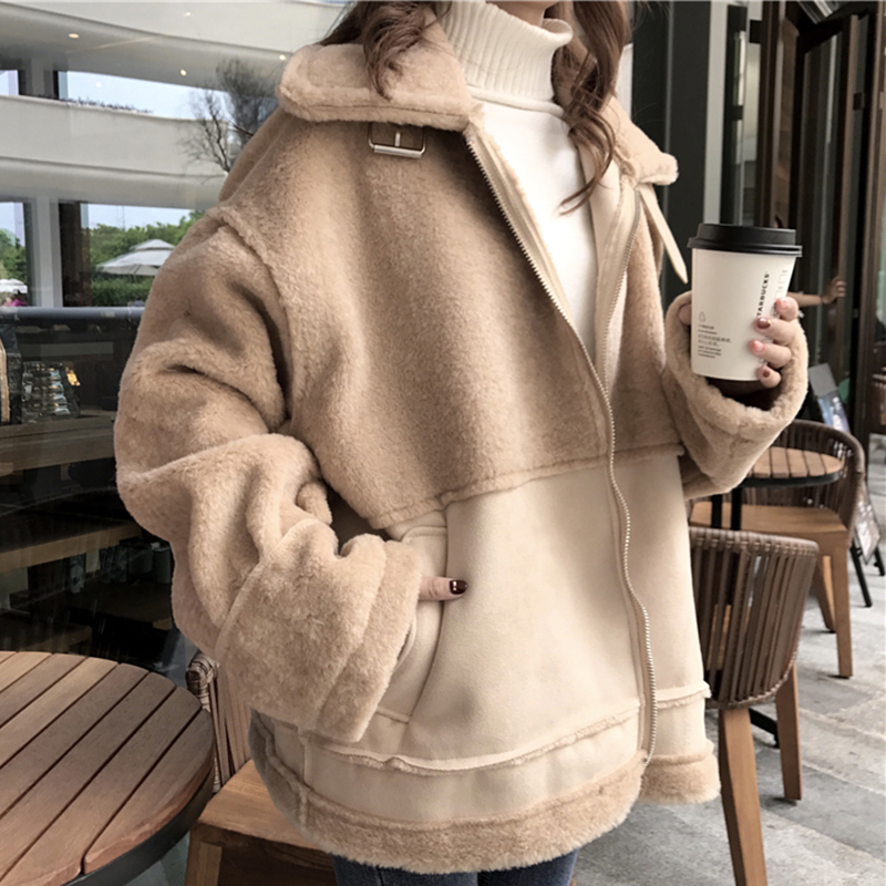 / 冬季新款女裝寬松保暖棉衣外套仿羊羔毛皮毛一體復古加厚棉服上衣