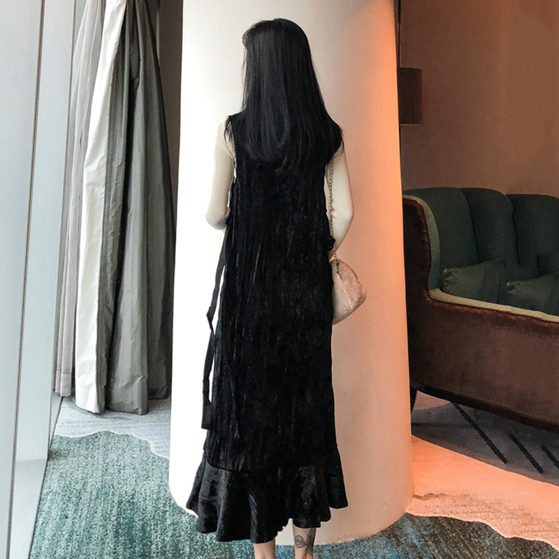 / 女神套裝秋2018新款修身高領打底上衣氣質荷葉邊中長背心連衣裙子