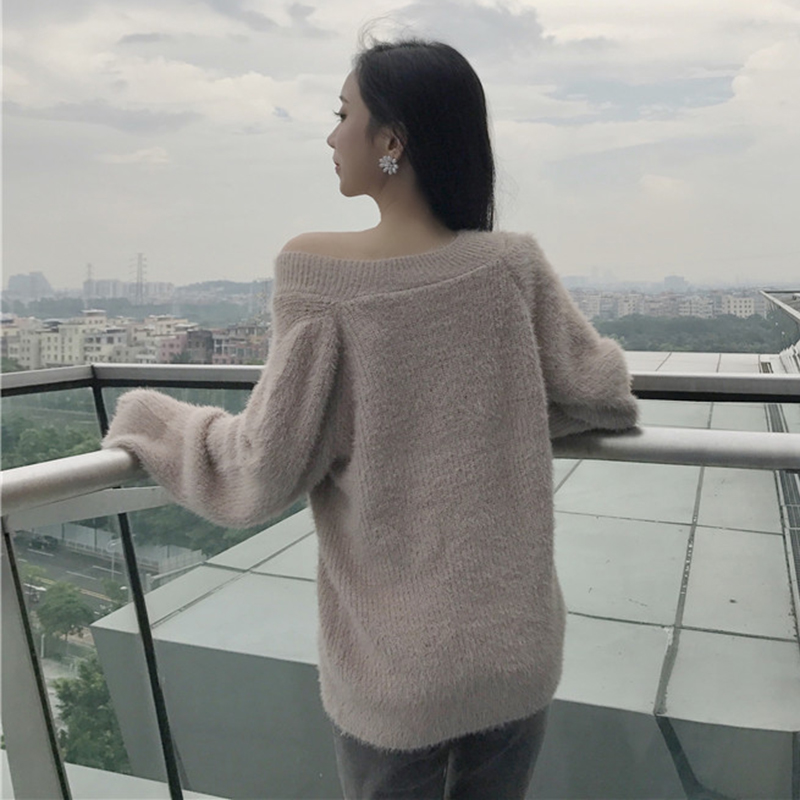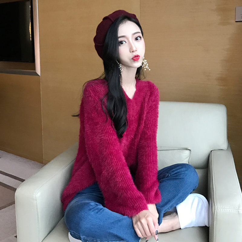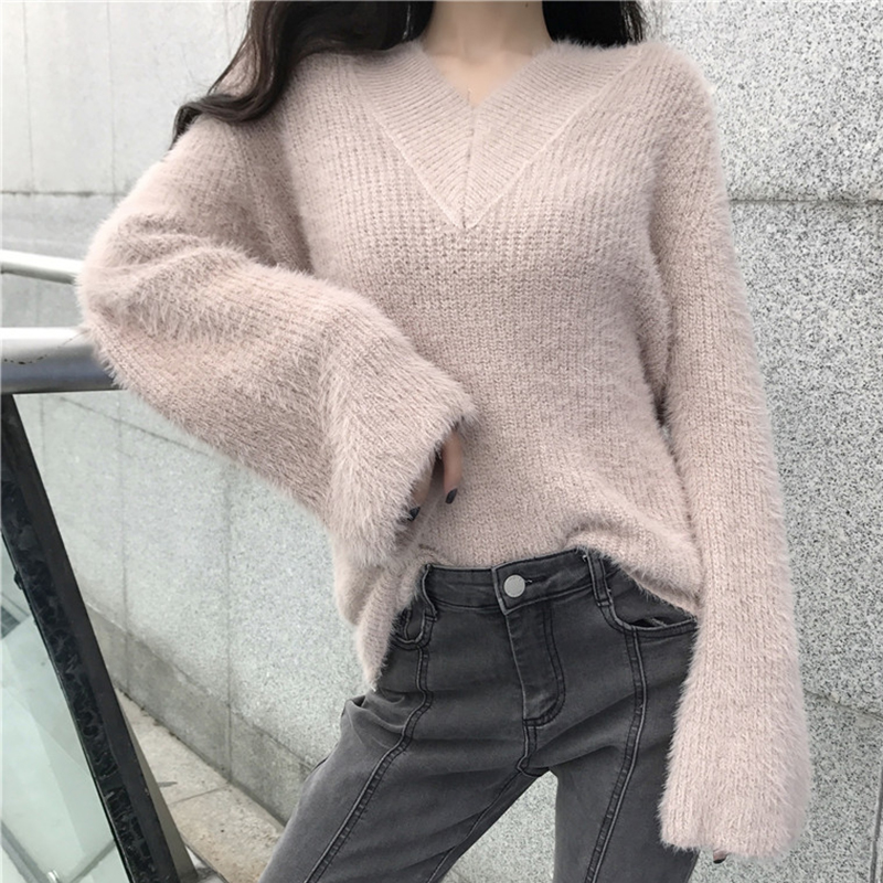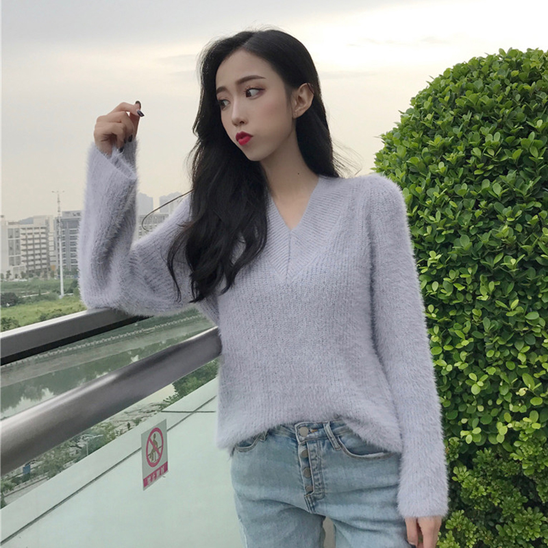 毛衣女2018新款秋裝溫柔女神氣質V領針織衫簡約寬松純色長袖上衣