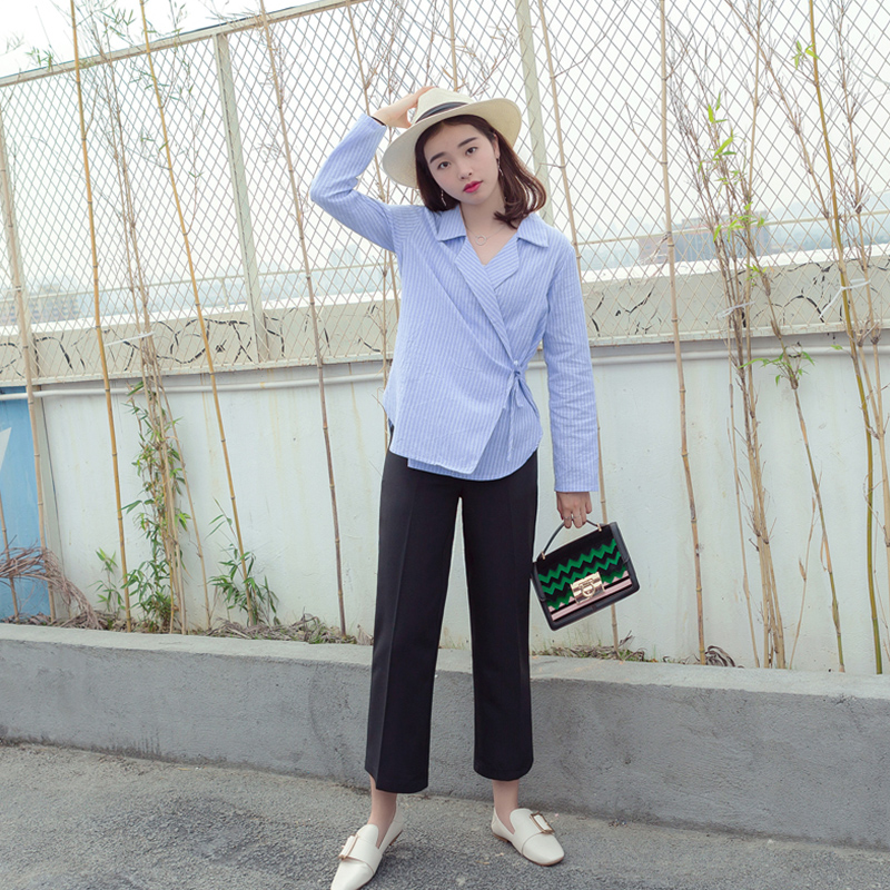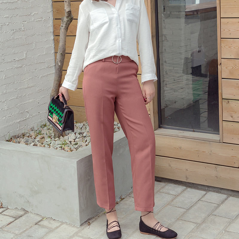 / 春裝新款女裝韓版寬松顯瘦休閑褲高腰直筒褲闊腿褲九分褲子潮