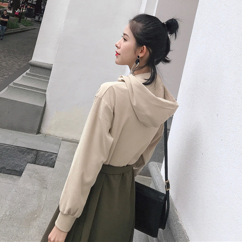 / 冷淡風拼色長袖風衣連衣裙秋裝女2018新款時尚收腰連帽A字中裙子