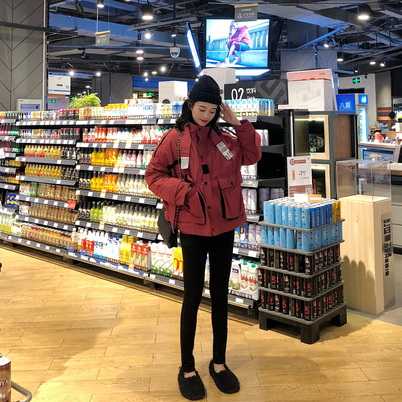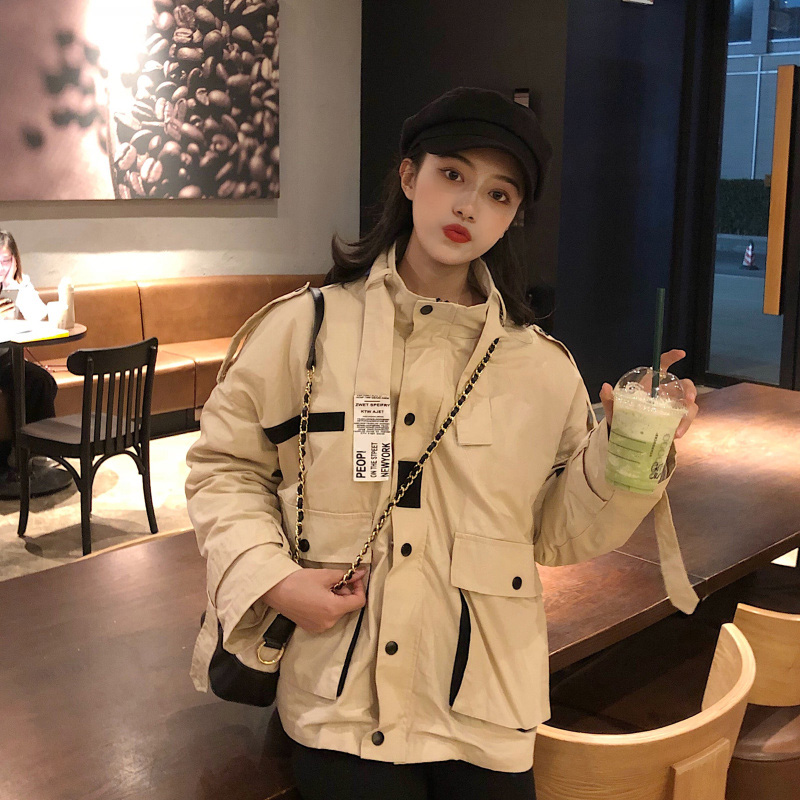 / 秋冬女裝新款韓版chic港味復古工裝寬松休閑加絨加厚長袖開衫外套