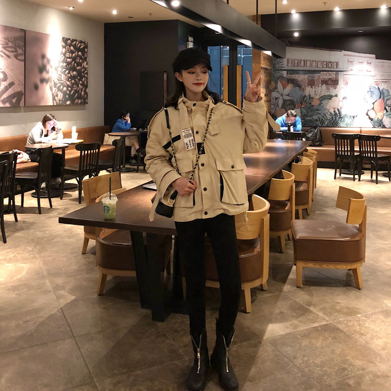 秋冬女裝新款韓版chic港味復古工裝寬松休閑加絨加厚長袖開衫外套